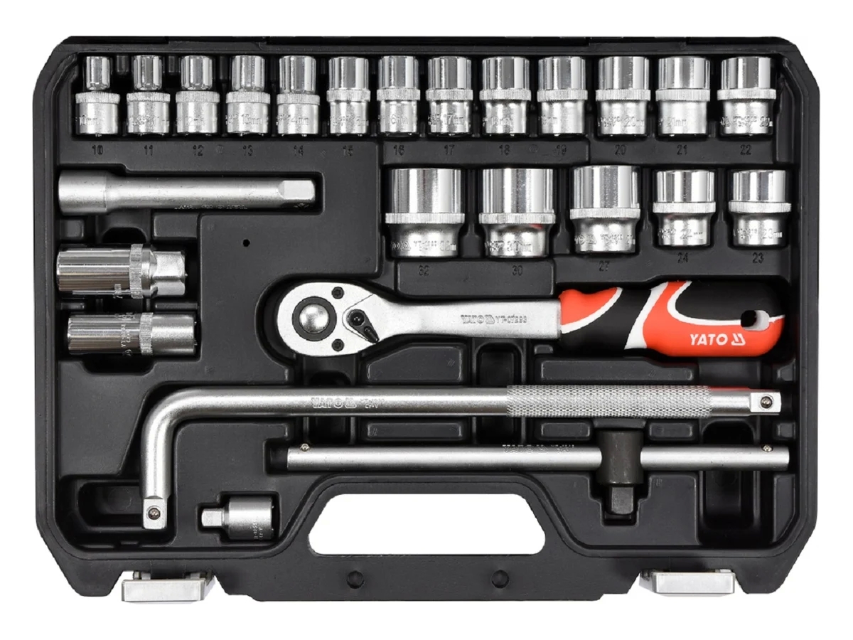 Набор головок с трещоткой YATO 1/2'', 25пр YT-38741 предназначен для сервисных центров и мастерских.