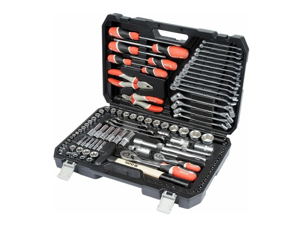 Набор инструментов YATO 108 предметов YT-38891 предназначен для широкого спектра ремонтных и монтажных работ. Находит применение на станциях технического обслуживания автомобилей и в других сферах. Инструменты набора выполнены из качественной и прочной стали, легированной хромом, молибденом и ванадием. Благодаря прочности материала, инструменты обладают высокой надежностью и прослужат долгое время. Рукоятки инструментов подходят для длительной работы без усталости рук. Набор поставляется в удобном кейсе для рационального хранения и транспортировки.