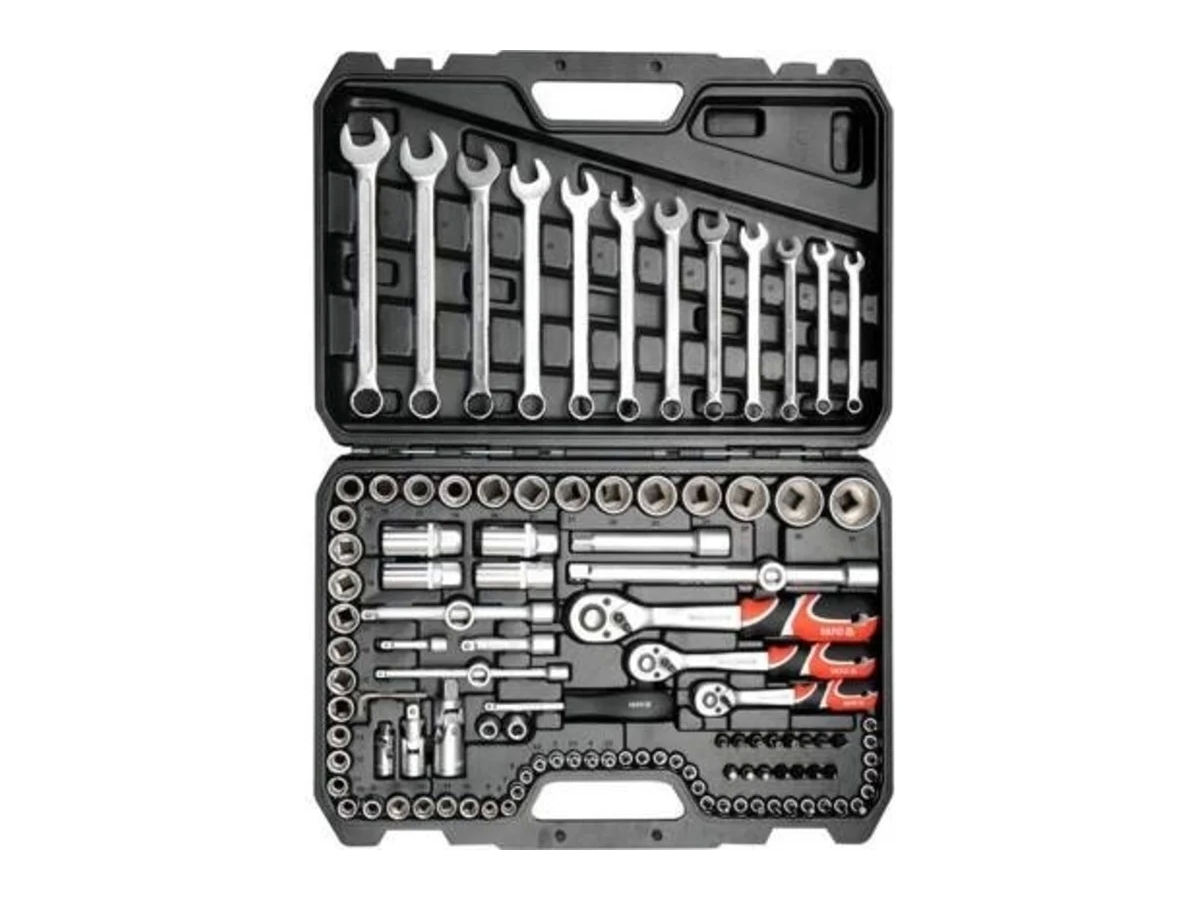 Набор инструментов YATO 1/2'' 111пр YT-38831 разработан для удовлетворения потребностей специализированных автомобильных и механических служб. Торцевые ключи и привод головок изготовлены из прочной инструментальной стали. Ключи были изготовлены методом штамповки, и перед закалкой они были откалиброваны с помощью точных датчиков и контрольных устройств. Головки оснащены системой AS-Drive, увеличивающей максимальный крутящий момент на 25%, с полной защитой обода гаек. В комплект также входят биты из твердой стали S2. Комплект позволяет выполнять работы, требующие очень высоких нагрузок и точности, позволяет выполнять множество сервисных работ, связанных с отвинчиванием и затяжкой резьбовых соединений различных номинальных размеров. Трещотки имеют трехкомпонентную ручку и 72 зубца (рабочий ход 5 градусов).
