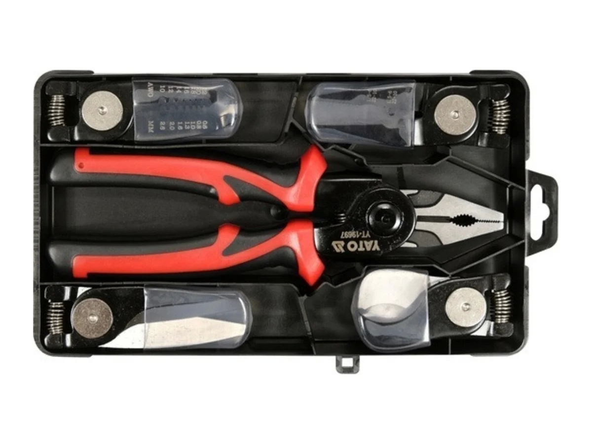 Многофункциональные плоскогубцы для электрики. Благодаря сменным головкам плоскогубцы можно превращать в 5 различных инструментов.