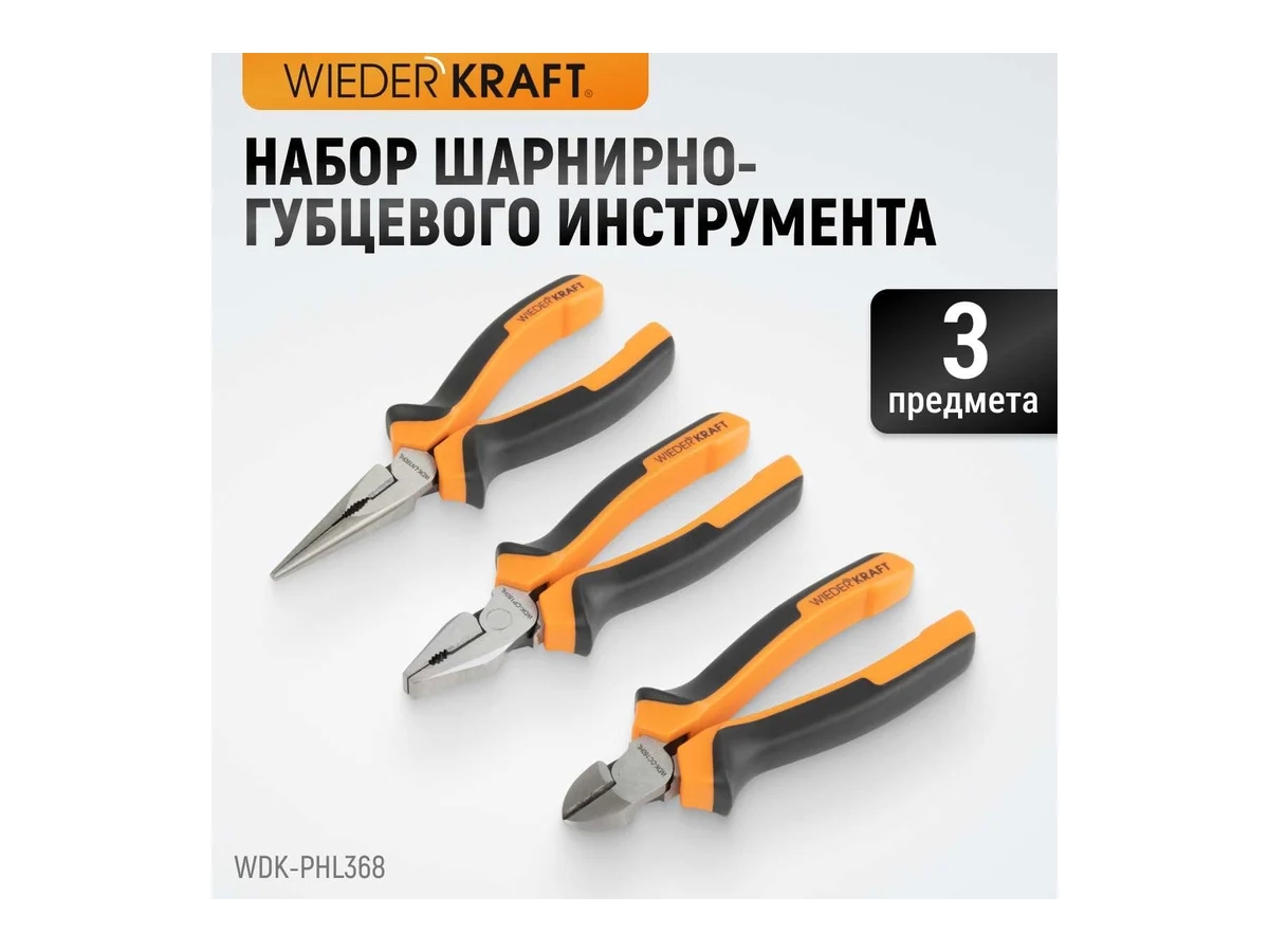 Набор шарнирно-губцевого инструмента WIEDERKRAFT 3 предмета WDK-PHL368 используется для различных столярных и слесарных работ.