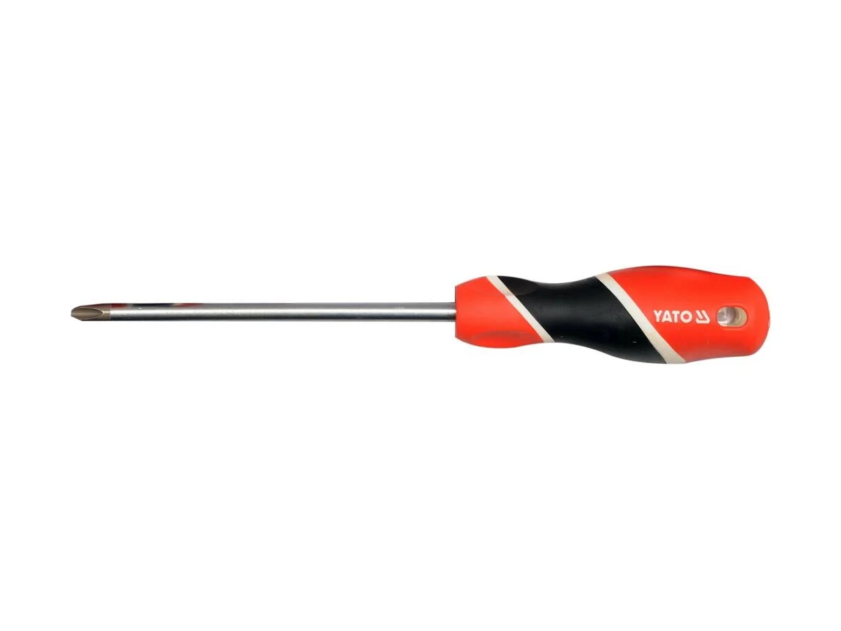 Отвёртка с крестообразным шлицем YATO PH2x250 мм YT-25939 является надежным инструментом для бытового использования. Она оснащена наконечником типа Phillips (PH), что обеспечивает надежное сцепление с крепежом и минимизирует риск соскальзывания. Размер шлица PH2 подходит для большинства стандартных крепежных элементов. Длина стержня 250 мм позволяет работать в труднодоступных местах, обеспечивая удобство и эффективность. Стержень изготовлен из прочного материала S2, что гарантирует долговечность и устойчивость к износу. Рукоять выполнена из 2-х компонентного материала, обеспечивая комфортный хват и предотвращая скольжение. Яркий оранжево-черно-белый цвет рукояти делает инструмент легко заметным в рабочей зоне. Прямая форма ручки способствует удобству использования и точности выполнения задач.