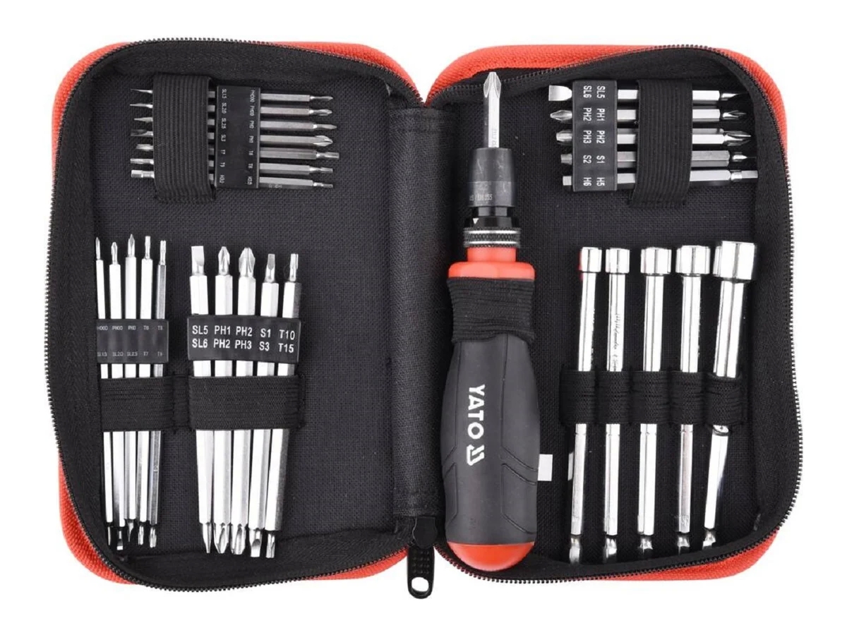 - Отвертка со сменными битами фирмы YATO YT-24940, набор бит, прецизионных бит и торцевых насадок