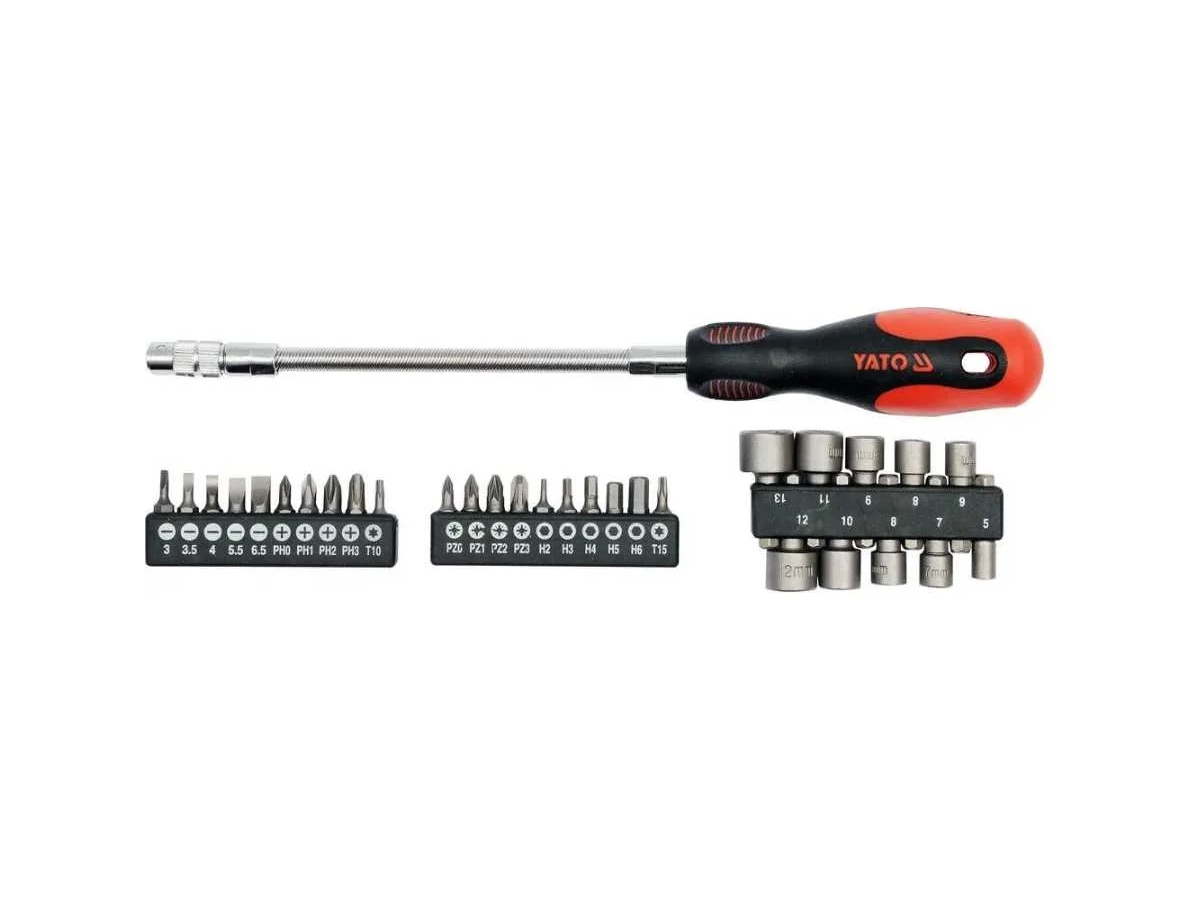 Отвёртка YATO представляет собой универсальный инструмент для точных работ, который включает в себя 32 прецизионные биты.