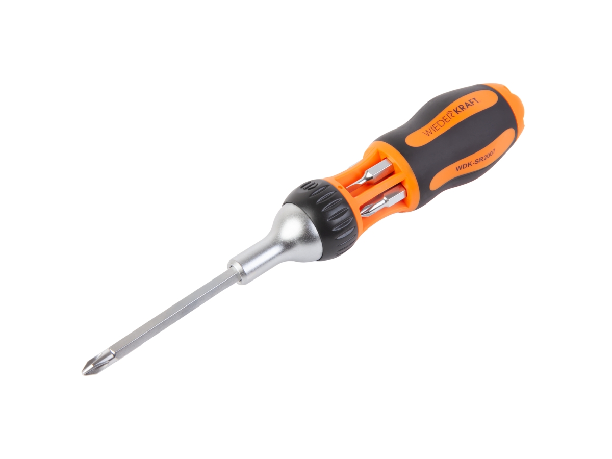 Реверсивная отвертка с набором бит WIEDERKRAFT SL+PH, 6 предметов WDK-SR2007 используется для работы с крепежом с плоским и крестообразным шлицем. Отвертка имеет три режима работы: левое вращение, правое вращение и фиксацию, что делает ее удобной в использовании для различных задач. Все сменные вставки выполнены из высококачественной стали SVCM, которая гарантирует долгий срок службы. Двухкомпонентная рукоять эргономичной формы обеспечивает надежный хват.