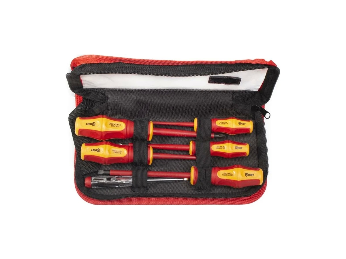 Набор диэлектрических отверток КВТ "Профи" НИО-06-S 87129 поставляется в прочном и удобном чехле на молнии. С его помощью можно безопасно переносить инструмент.
