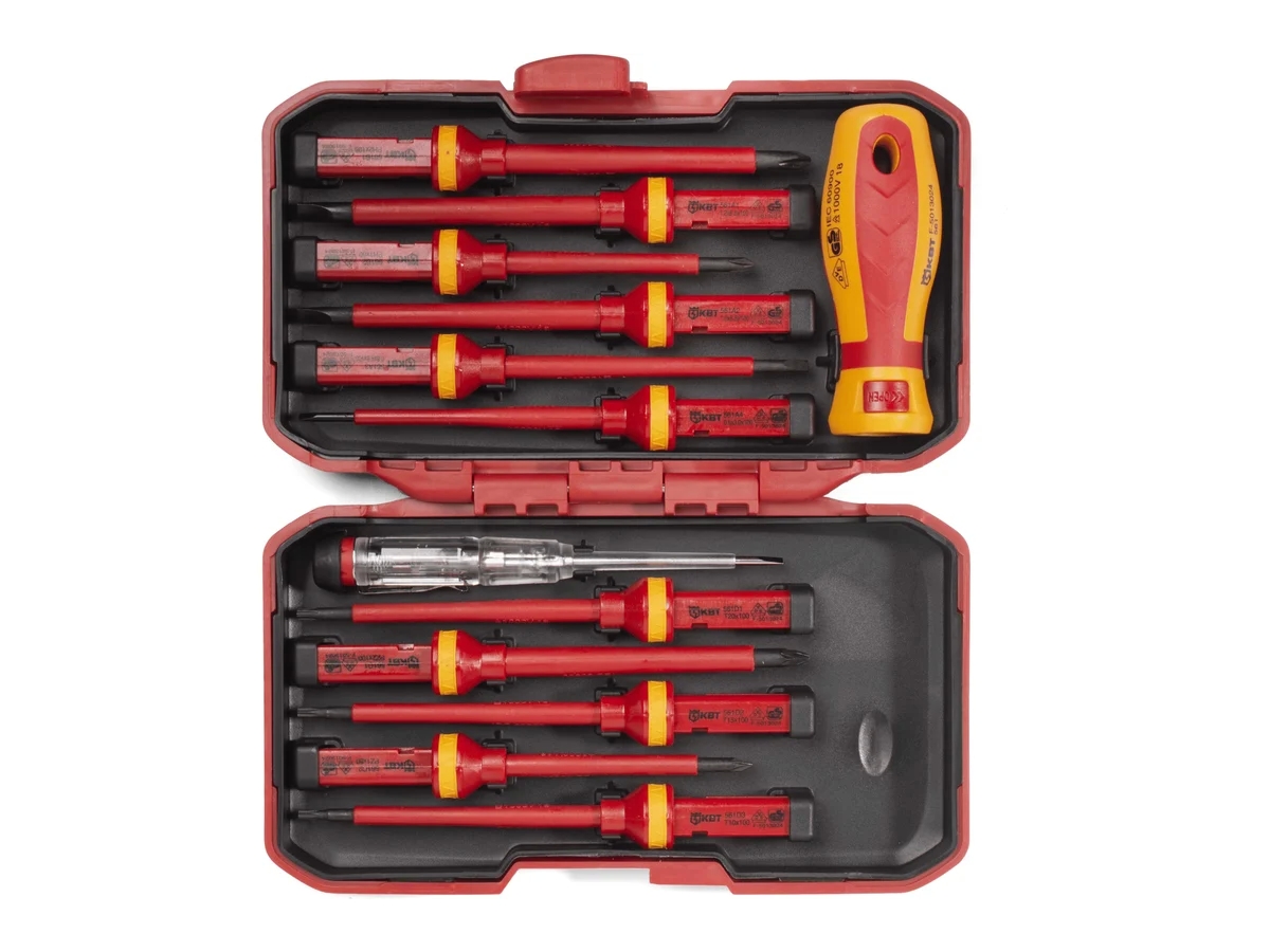 Набор диэлектрических отверток КВТ Профи НИО-4412 78615 применяется для монтажных работ под напряжением до 1000 В. Инструмент оснащён прямыми рукоятками с мягкими прорезиненными вставками. Стержни отвёрток выполнены из прочной хром-ванадиевой стали.