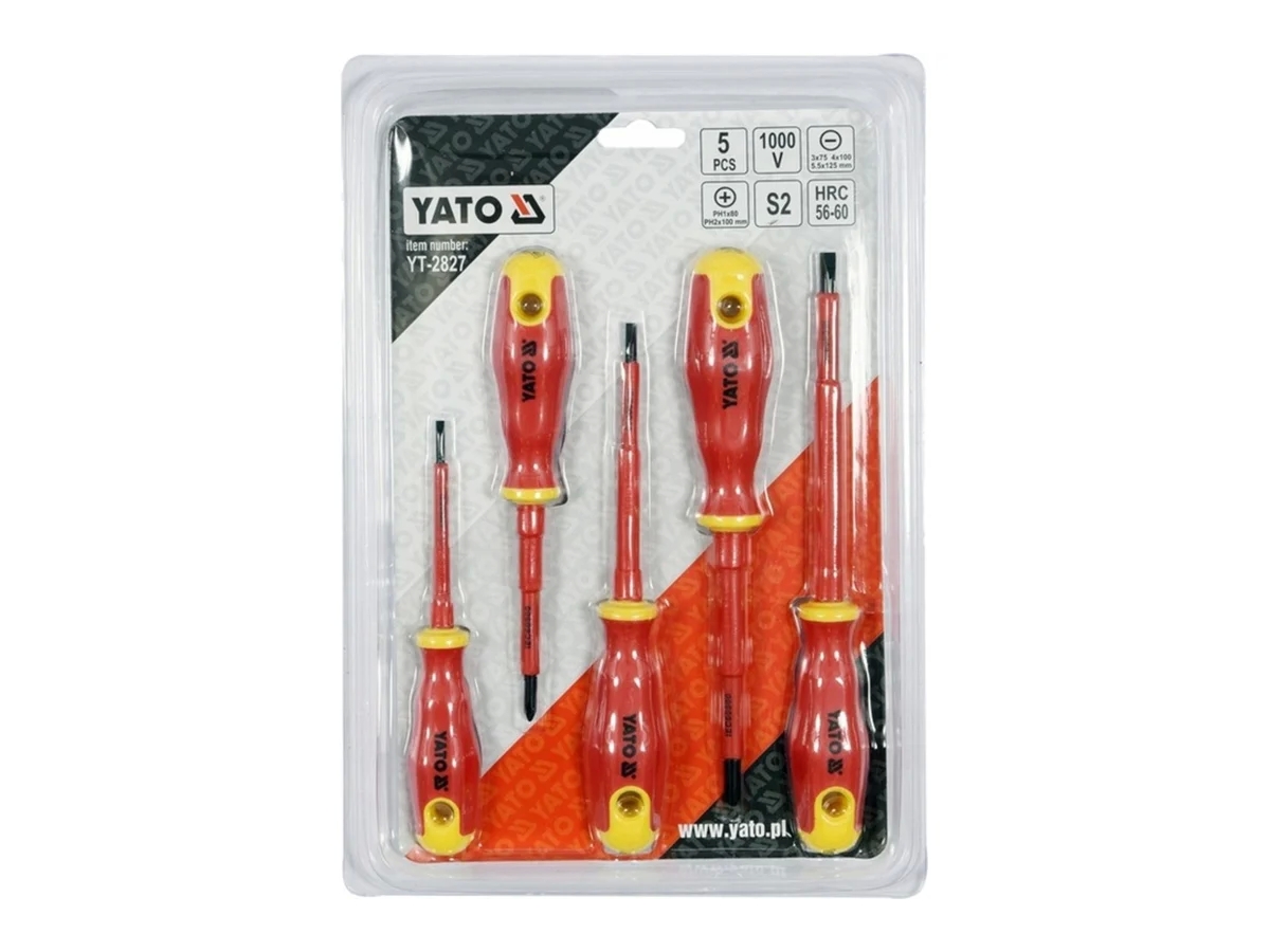 YT-2827 Набор отверток из 5 предметов с изоляцией VDE, изготовлен из прочной стали S2 с твердостью HRC 56-60.