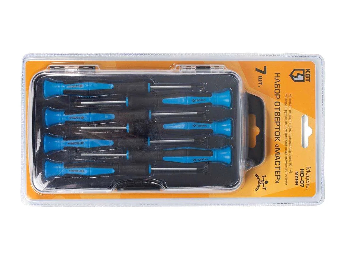 Набор мини отверток КВТ Мастер НО-07 78623 представляет собой набор высококачественных инструментов. Предназначен для бытовых нужд. Стержни отвёрток выполнены из хром-ванадиевой стали.