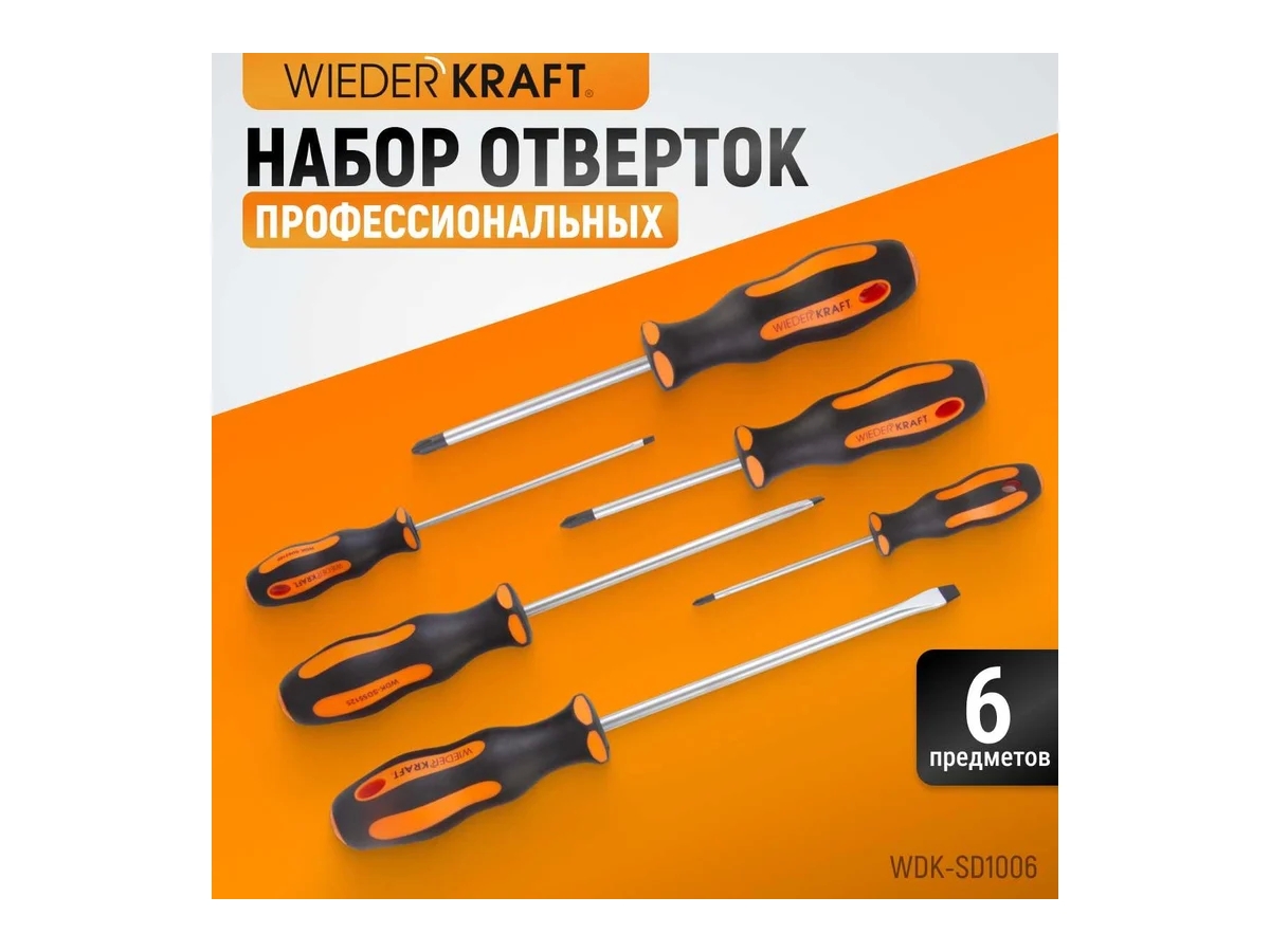Набор отверток WiederKraft WDK-SD1006 создан для точной и удобной работы с различными типами крепежа, включая плоские и крестообразные шлицы. Эти отвертки незаменимы как для бытовых, так и профессиональных ремонтных задач. Благодаря использованию высокопрочной стали SVCM, они обладают повышенной долговечностью, а двухкомпонентные рукояти обеспечивают комфорт при работе.
