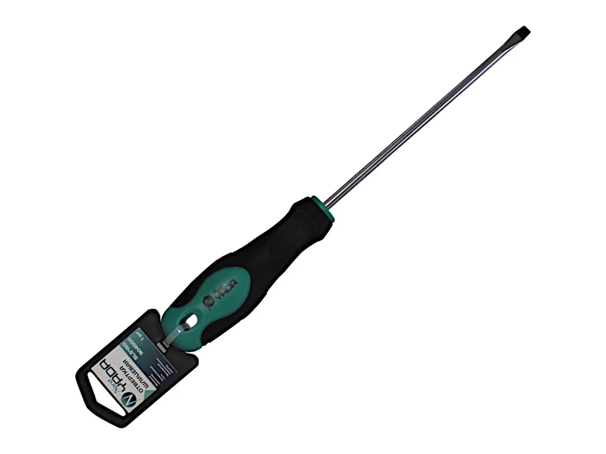 Шлицевая отвертка предназначена для работ с крепежом в процессе ремонта и монтажа. Инструмент выполнен из высококачественной хромованадиевой стали, что обеспечивает прочность и долговечность. Специальное покрытие исключает возникновение коррозии. Эргономичная рукоятка обеспечивает комфортное использование.