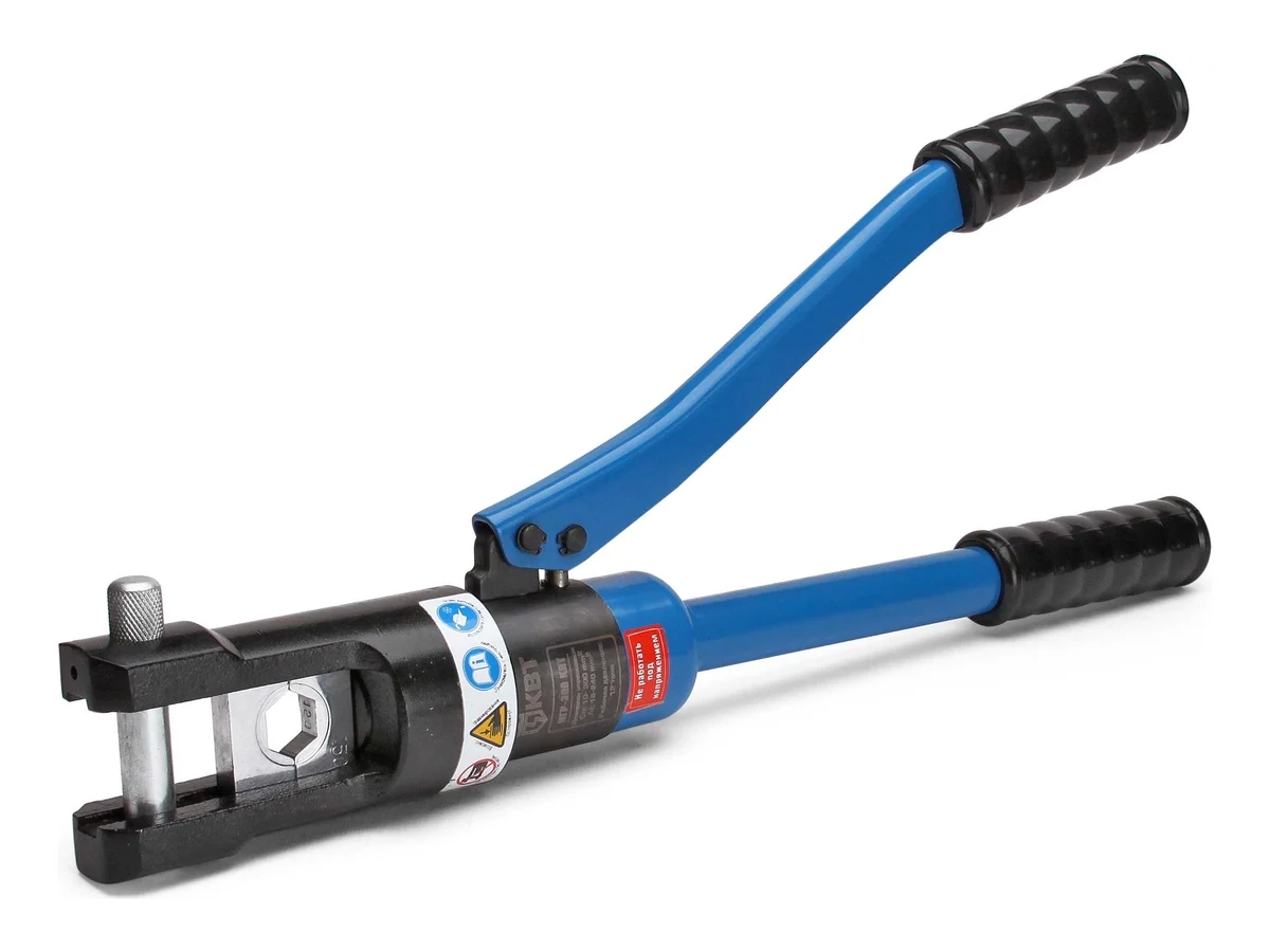 Гидравлический ручной пресс КВТ ПГР-300 49628 представляет собой простой в работе инструмент для выполнения электромонтажных работ. Данная модель пресса станет прекрасным помощником для профессионала. Приспособление предназначено для обжима медных и алюминиевых наконечников в диапазоне от 10 до 300 мм².
