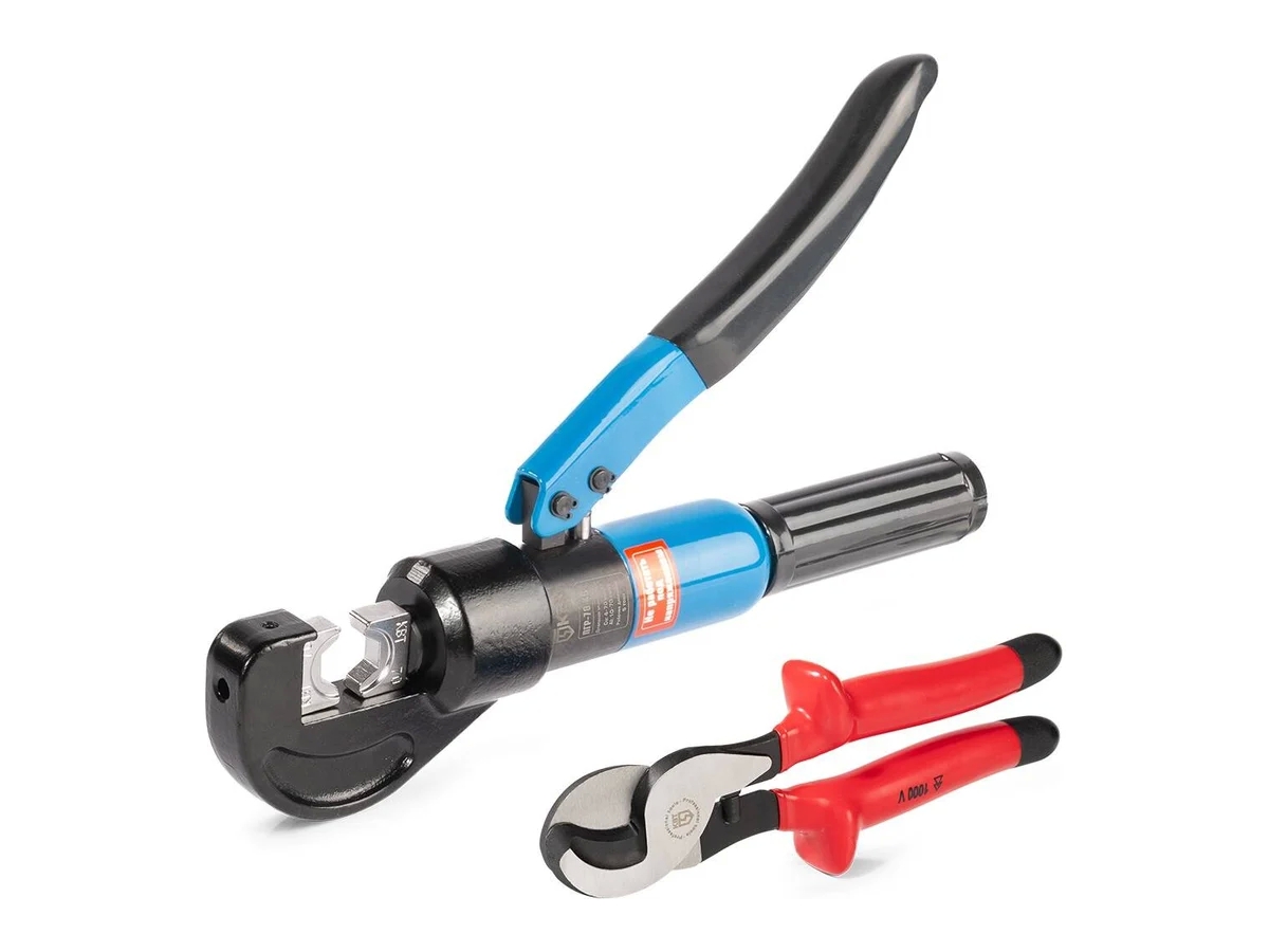 - Комплект предназначен для опрессовки неизолированных кабельных наконечников, резки кабеля.