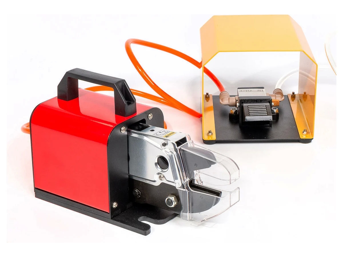 Пневматические пресс-клещи КВТ ПКП-01 85396 предназначены для серийной опрессовки изолированных наконечников, гильз и разъемов, медных трубчатых наконечников, автоклемм и других наконечников в зависимости от выбранной матрицы. Устройство оснащено ножным педальным приводом с регулятором давления, что позволяет настроить необходимые параметры работы. Прозрачный защитный кожух на губках инструмента препятствует попаданию в корпус пыли и влаги. Компактные габариты и удобная рукоятка обеспечивает удобную транспортировку инструмента.