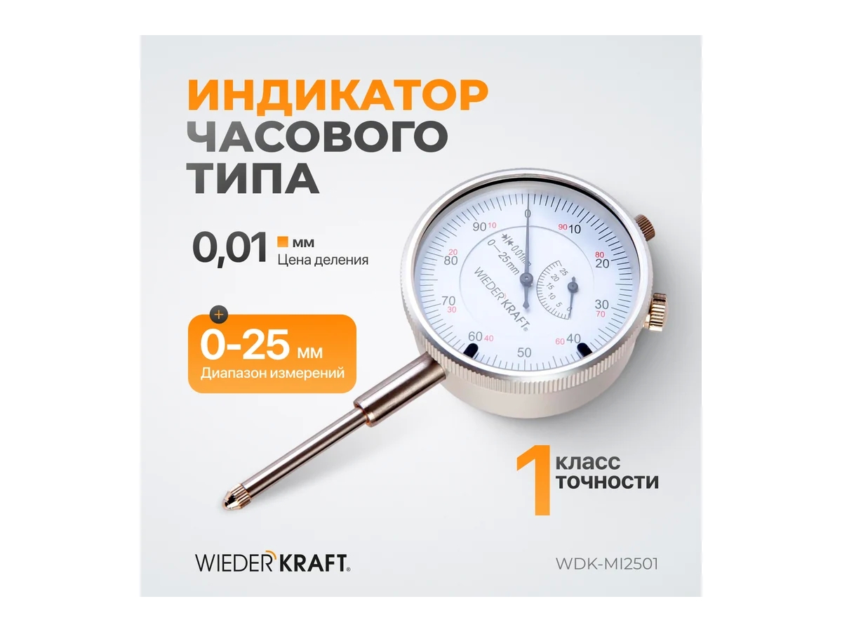 Индикатор часового типа WDK-MI2501 предназначен для измерения линейных размеров, отклонений от заданной геометрии и взаимного расположения поверхностей. Может использоваться для абсолютных и для относительных измерений. Применяется в машиностроении, приборостроении и других сферах, где необходим контроль точности.