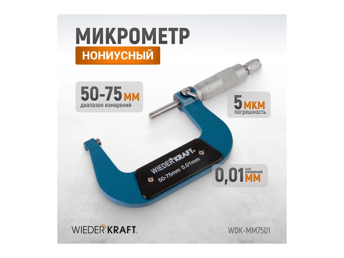 Микрометр нониусный WDK-MM7501, 50–75 мм, 0,01 мм — это высокоточный измерительный прибор, созданный для тех, кто привык работать с максимальной аккуратностью. Он позволяет проводить прецизионные линейные замеры в диапазоне от 50 до 75 мм с точностью до сотых долей миллиметра. Отлично подойдет для работ на машиностроительном, слесарном или инструментальном участке, в СТО, цеху или лаборатории контроля качества.
