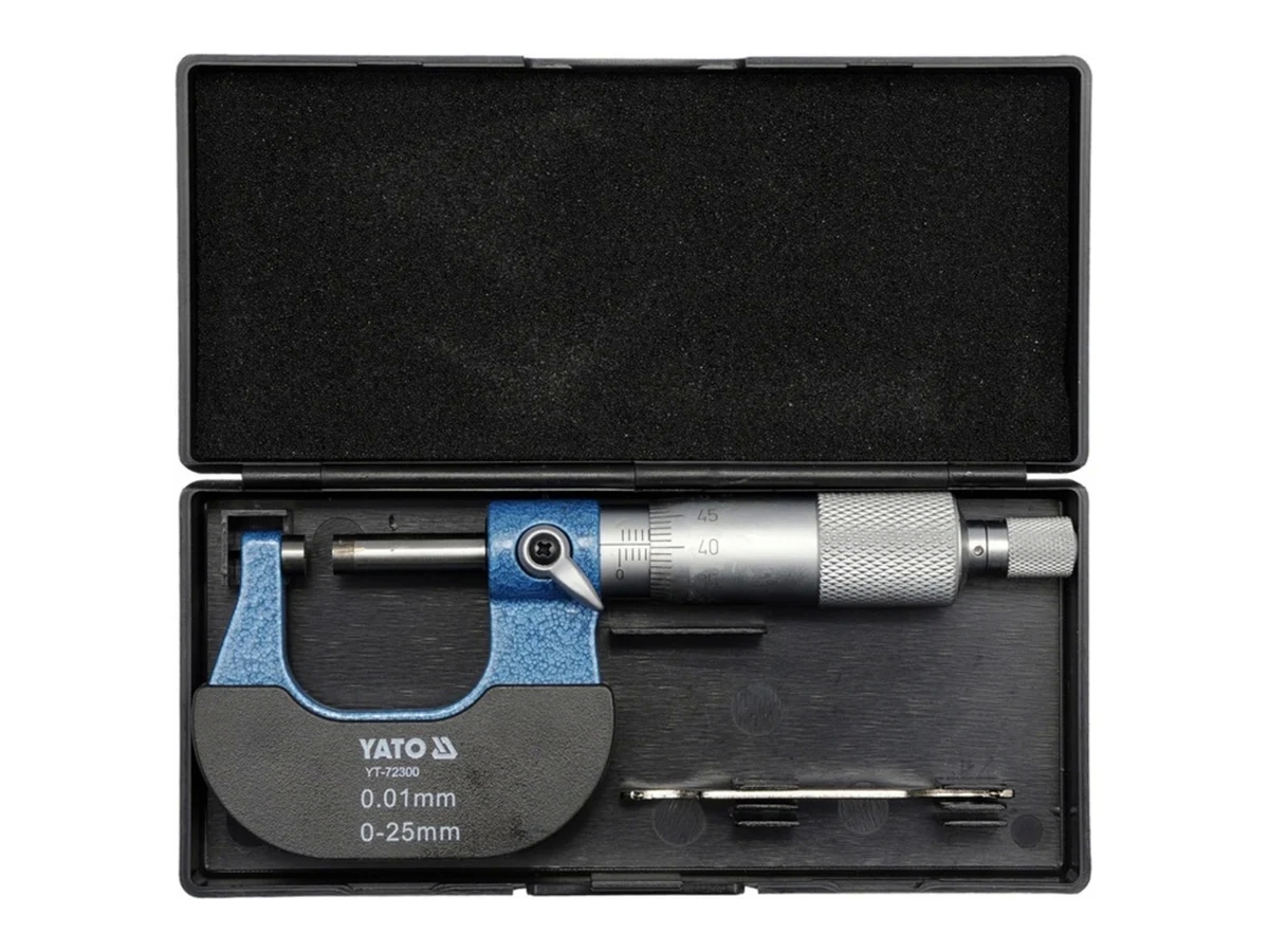 Микрометр, предназначенный для выполнения точных измерений в диапазоне от 0 до 25 мм.