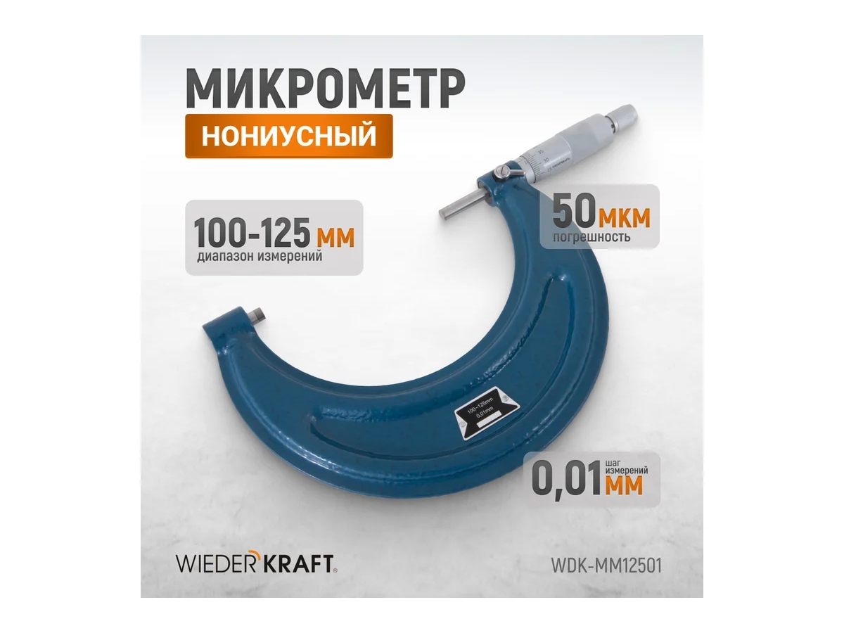 Микрометр нониусный WDK-MM12501, 100–125 мм, 0,01 мм — это высокоточный измерительный прибор, созданный для тех, кто привык работать с максимальной аккуратностью. Он позволяет проводить прецизионные линейные замеры в диапазоне от 100 до 125 мм с точностью до сотых долей миллиметра. Отлично подойдет для работ на машиностроительном, слесарном или инструментальном участке, в СТО, цеху или лаборатории контроля качества.
