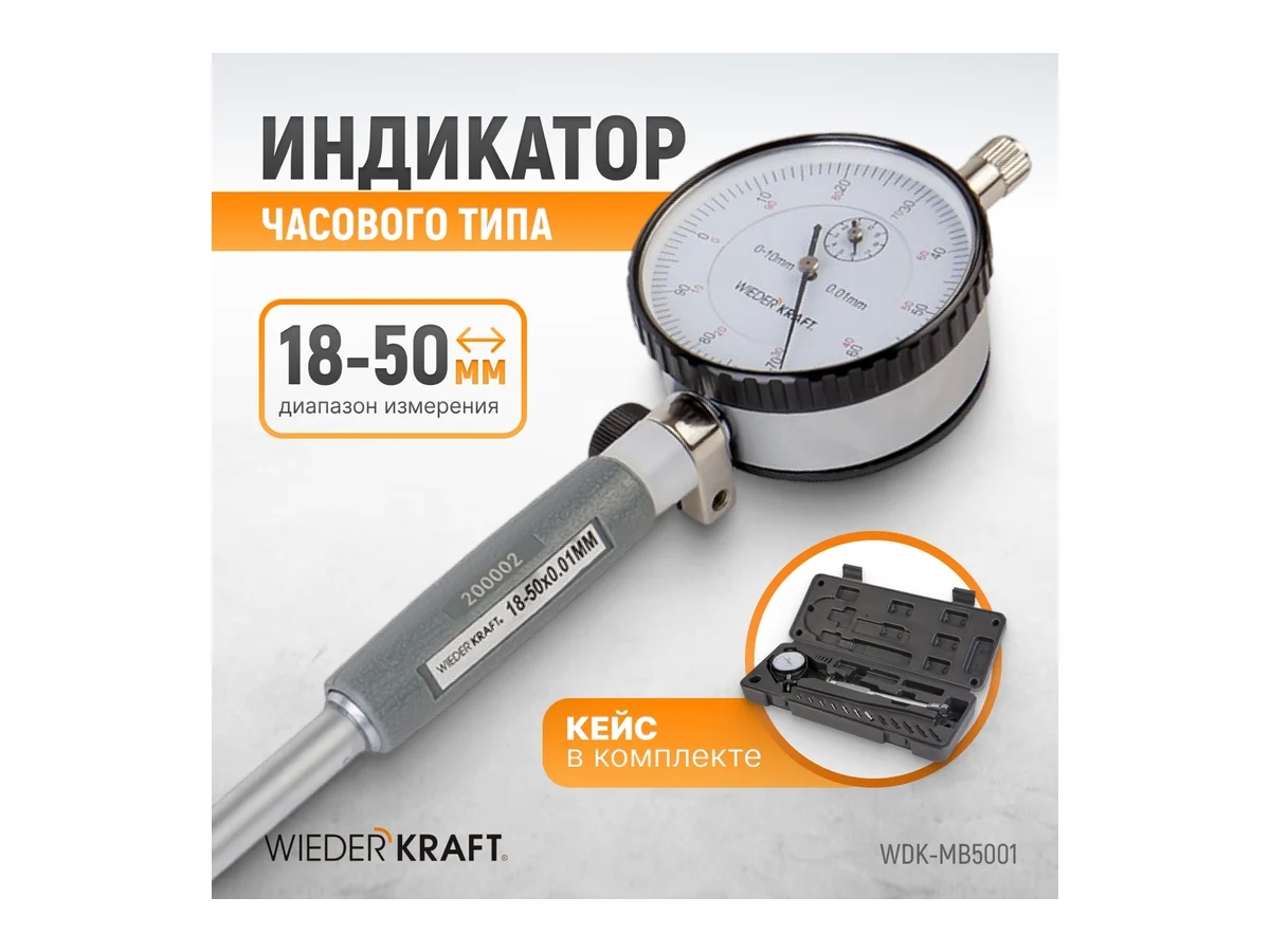 Нутромер индикаторный WDK-MB5001 предназначен для высокоточного измерения внутренних размеров в диапазоне от 18 до 50 мм. Это классический прибор относительного измерения, применяемый в машиностроении, ремонтных работах, производственном контроле и везде, где требуется точная оценка внутреннего диаметра. Прибор работает в паре с индикатором часового типа и комплектом сменных стержней.