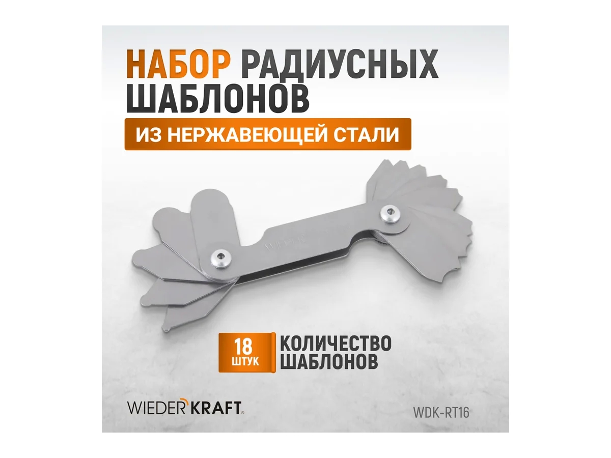 Набор радиусных шаблонов WDK-RT16 №1 — это надежный измерительный инструмент для оценки радиусов вогнутых и выпуклых поверхностей. Подходит для использования на промышленных объектах, в сборочных цехах, мастерских и при контроле износа деталей.