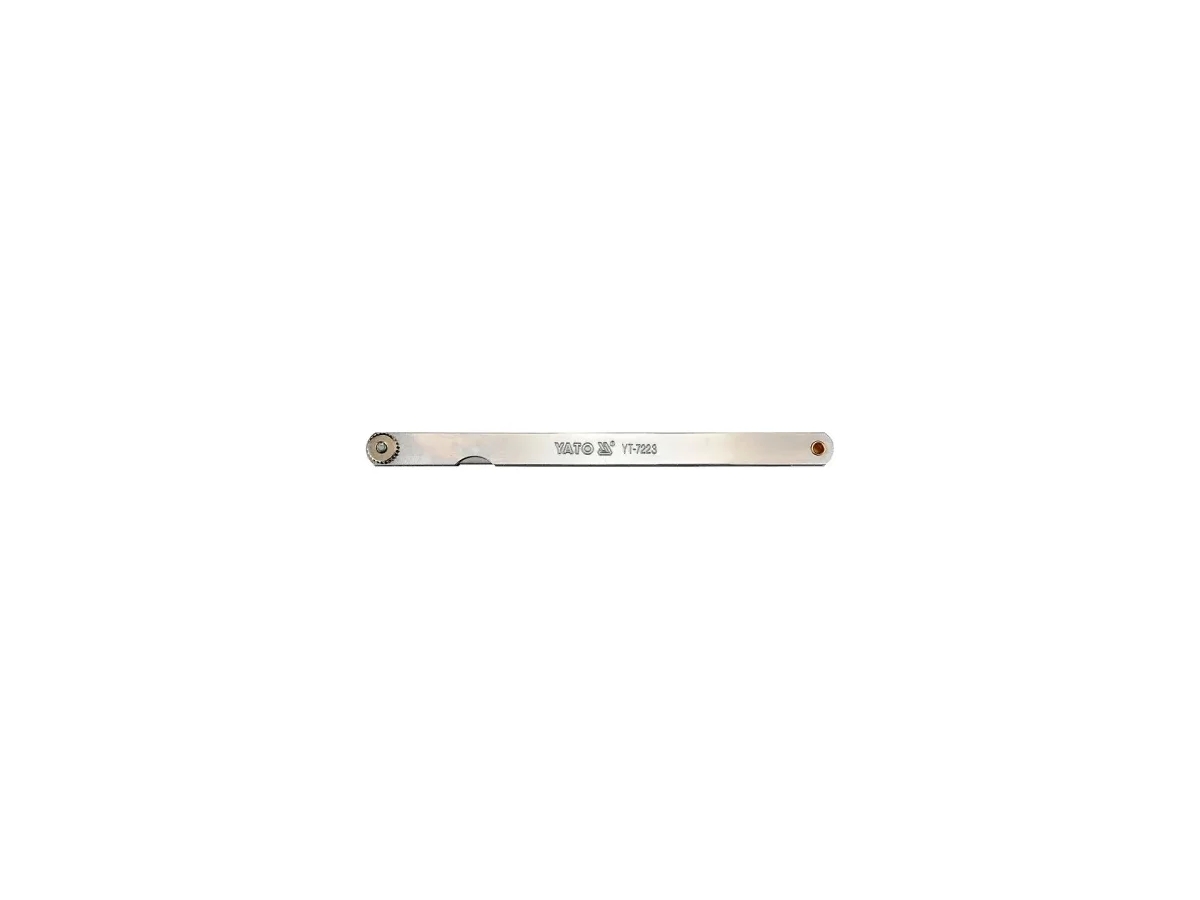 Измерительные щупы YATO 200 мм, 0,05-0,5 мм, 14 шт. YT-7223 применяются для контроля зазоров между плоскостями. Щуп имеет вид пластинки определённой толщины. В комплекте поставляются измерительные щупы толщиной от 0.05 до 0.5 мм. Щупы могут применятся отдельно или в различных сочетаниях. Инструменты изготовлены из специальной нержавеющей стали и имеют длительный период эксплуатации. Размеры стальных листов 12,8х200 мм.