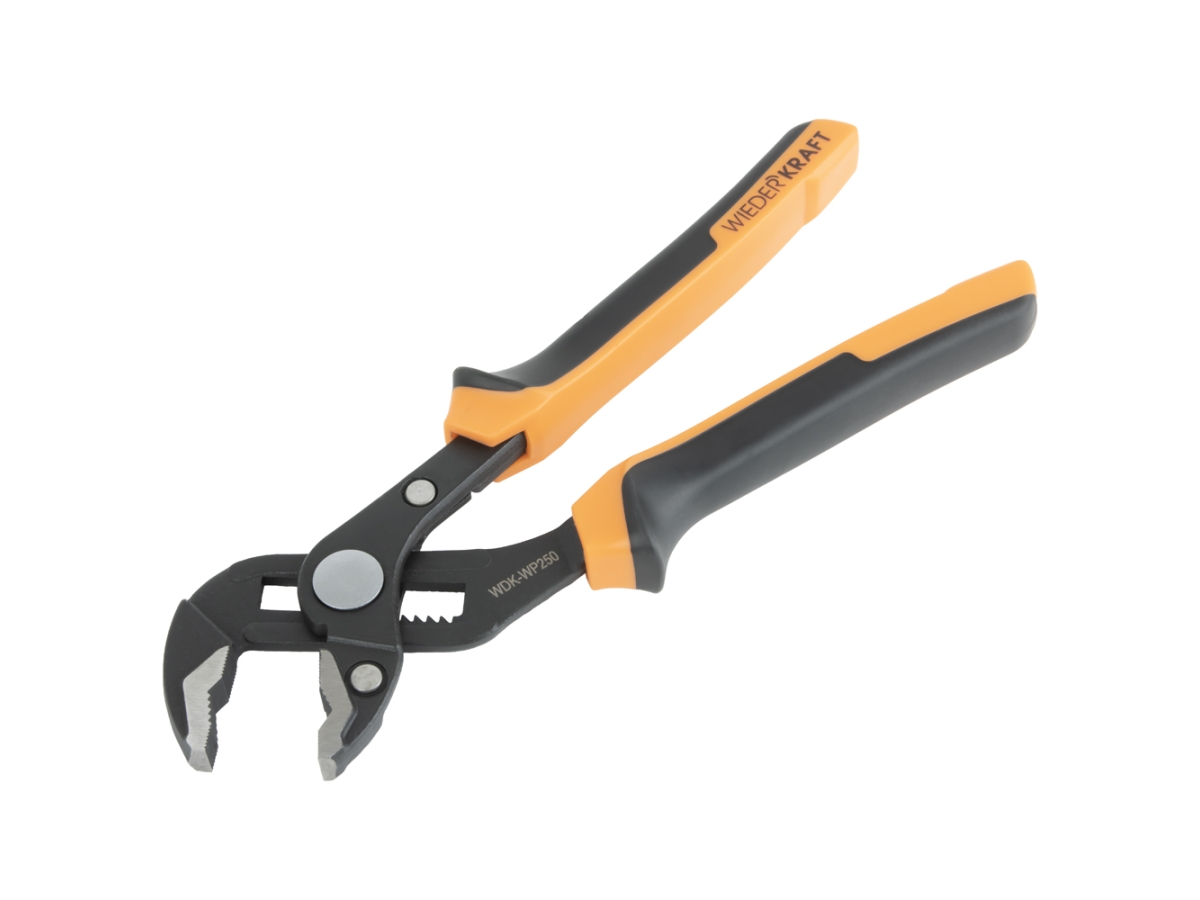 Переставные клещи WIEDERKRAFT c двухкомпонентной рукоятью, 250 мм, рабочий диапазон 0-42 мм WDK-WP250 изготовлены из высокопрочной стали, методом ковки и штамповки. Твердость составляет 46-47 HRC, а благодаря дополнительной индукционной закалке рабочие зубья захватов имеют твердость 49-50 HRC, что обеспечивает долгий срок службы инструмента.