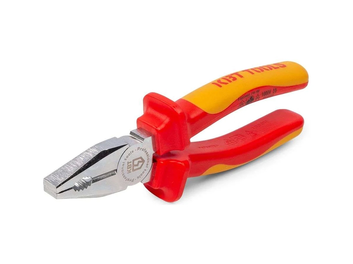 Изолированные пассатижи КВТ Профи 180 мм 67358 предназначены для резки твердой стальной проволоки, которая может находится под напряжением до 1000 В. Инструмент состоит из рабочей части, она выполнена из хромованадиевой стали, и многокомпонентных рукояток с упором, который не позволяет руке соскальзывать.