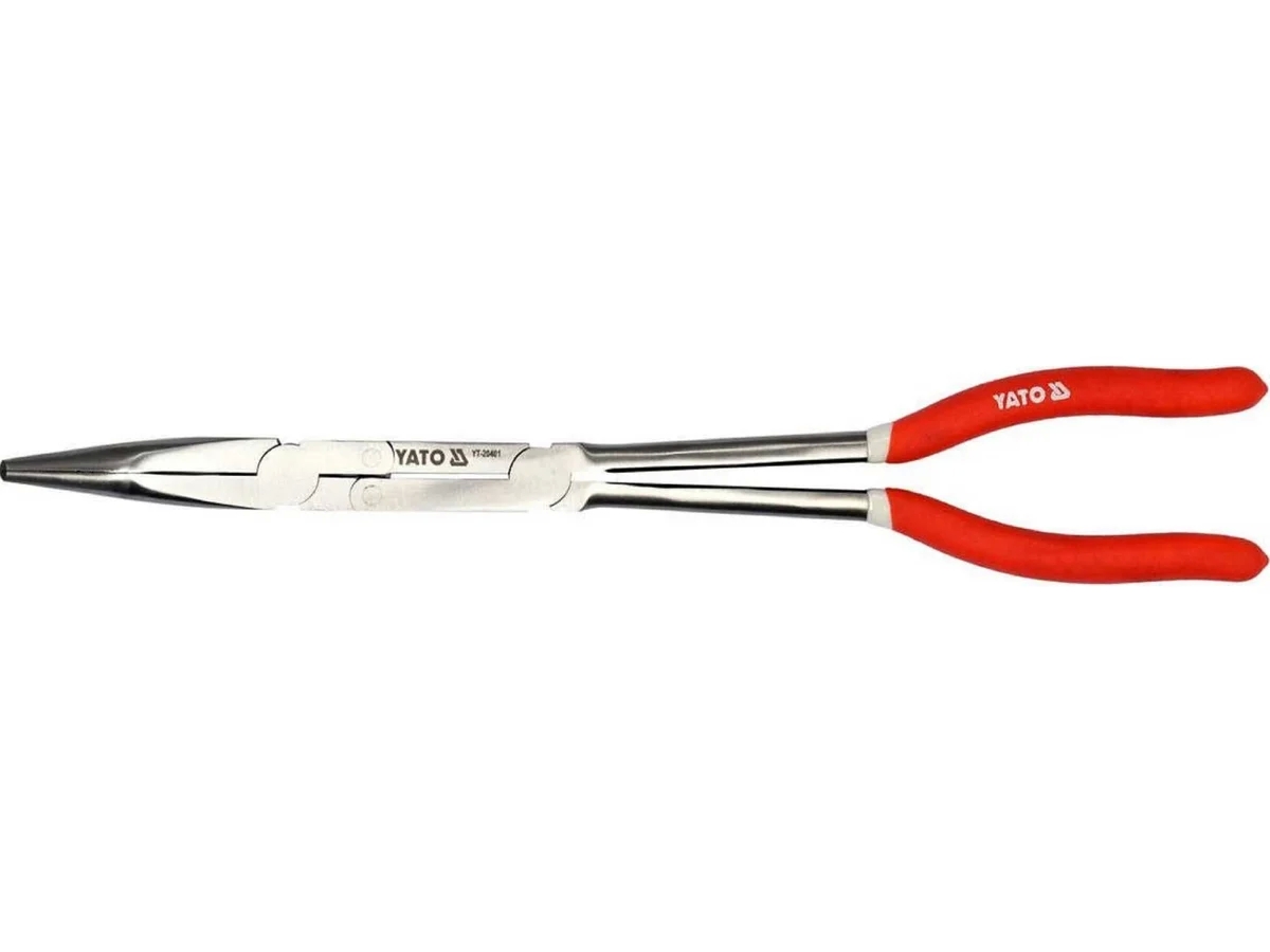 Плоскогубцы YATO изогнутые, 2 шарнира, 330мм YT-20401 имеют удлиненную рабочую часть для выполнения точных работ, в том числе элементов захвата в труднодоступных местах и узких местах. Изготовлены из прочной стали CrV.