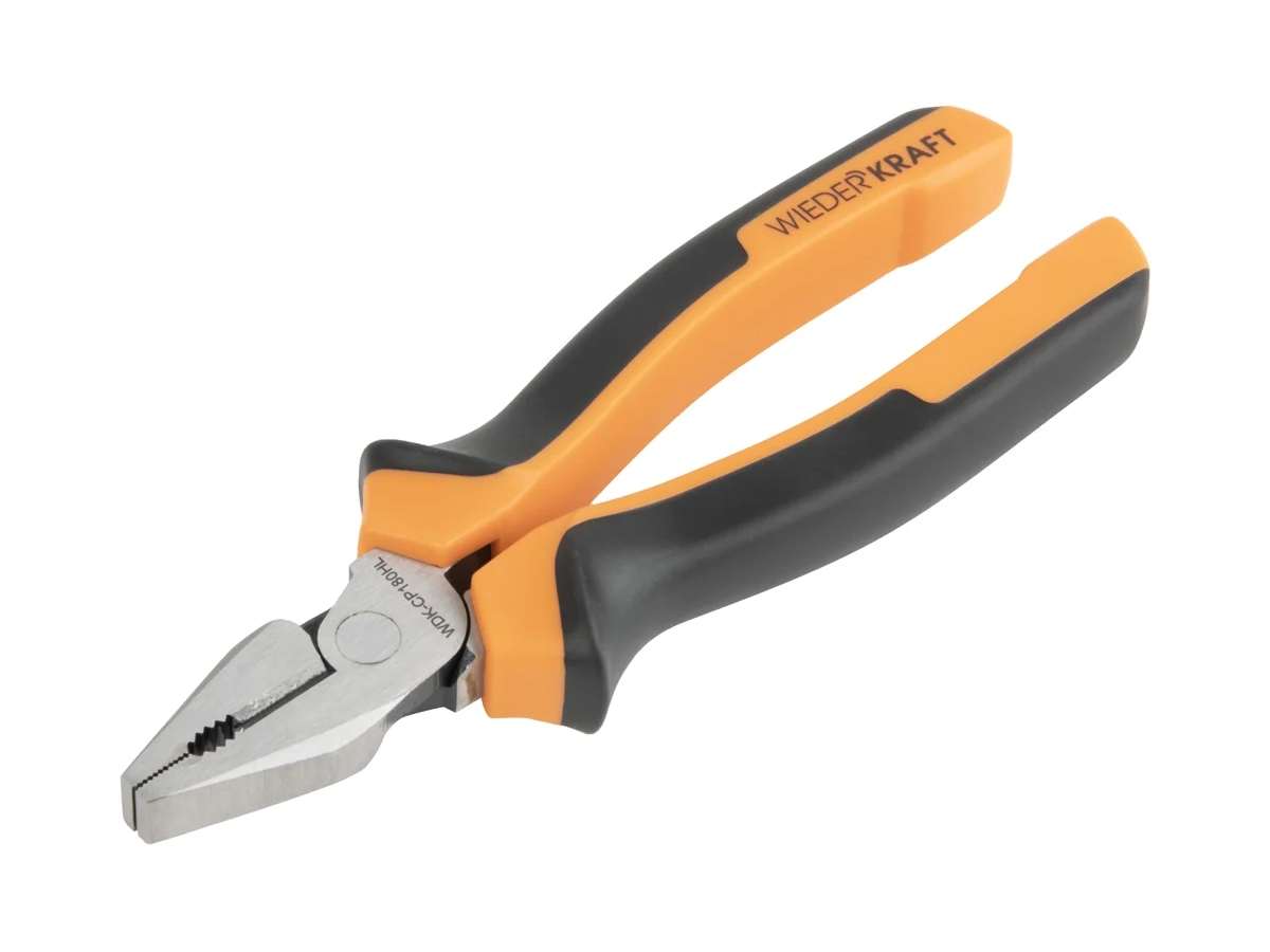 Плоскогубцы WIEDERKRAFT с двухкомпонентной рукоятью, 180 мм WDK-CP180HL используются для различных работ. Инструмент соответствует стандарту DIN ISO 5746.