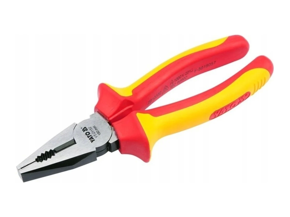 Комбинированные плоскогубцы YT-21152 с изоляцией VDE, изготовленные из высококачественной стали CrV. Стандартная форма губок с очень точно выполненными канавками и прочным режущим элементом.
