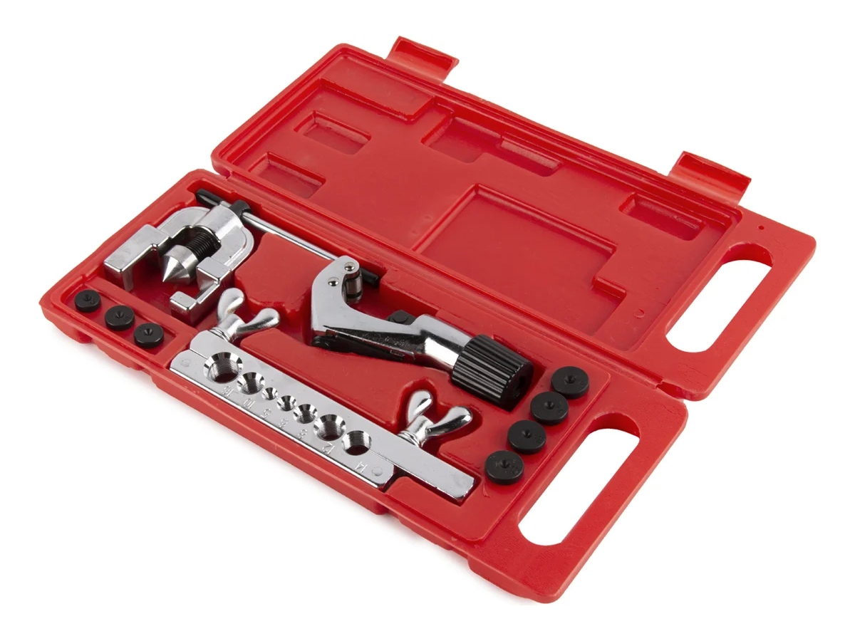 Набор для развальцовки и резки трубок WIEDERKRAFT 5, 6, 8, 10, 12, 14, 16 мм WDK-214325 используется для труб из цветных металлов. Набор позволяет нарезать, а также развальцовывать медные, алюминиевые и латунные трубки для соединения частей системы питания, тормозной системы и труб кондиционирования.