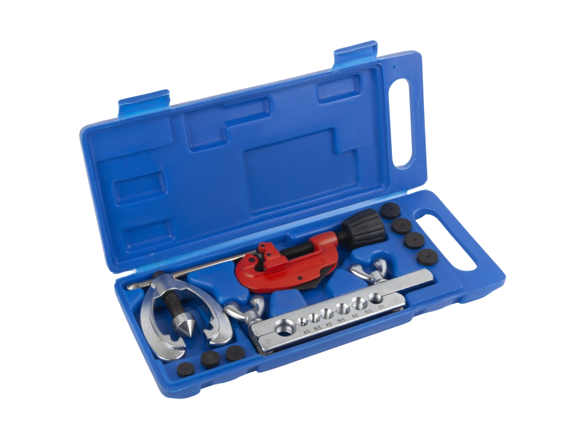 Профессиональный набор WIEDERKRAFT WDK-214327 предназначен для резки и развальцовки трубок из цветных металлов (медь, алюминий, латунь). Используется для создания герметичных соединений в тормозных системах, топливных магистралях и системах кондиционирования. В комплекте — тиски, труборез, матрица и 7 пуансонов для разных диаметров.
