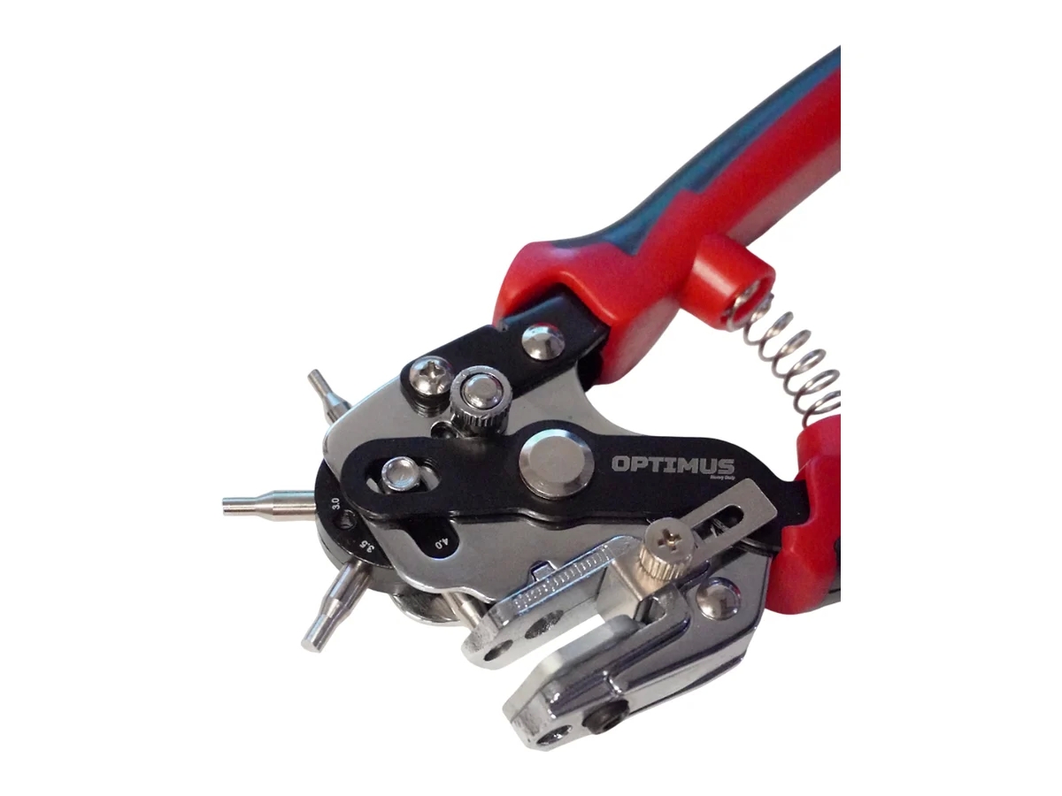 Револьверный дырокол OPT-RE105 с шестью и иглами, позволяющий создавать отверстия диаметром от 2 до 4,5 мм.