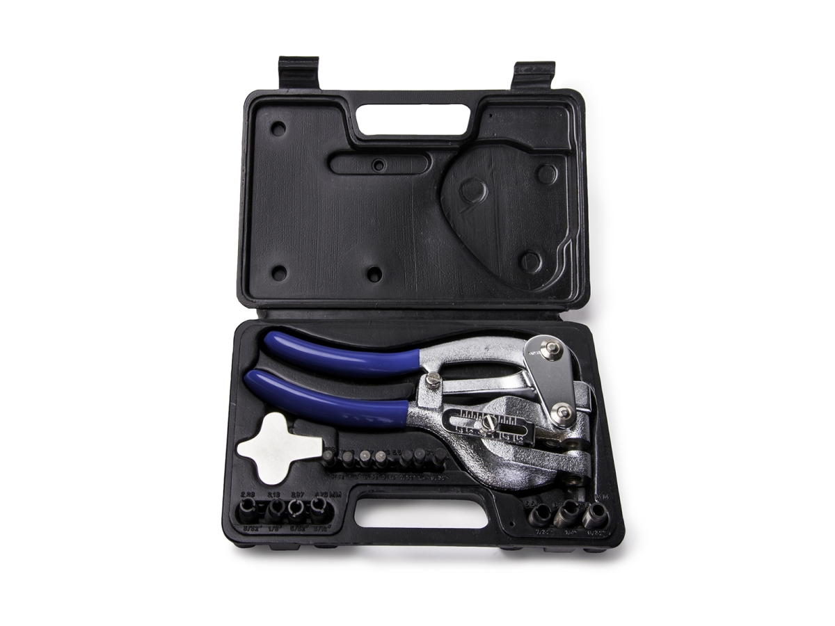 Универсальный кузовной дырокол WIEDERKRAFT WDK-45678 предназначен для создания ровных отверстий в листовом металле толщиной до 2 мм. Инструмент развивает усилие до 1 тонны, что позволяет легко и точно пробивать отверстия в металле. В комплект входят насадки разных диаметров, что дает гибкость в работе и адаптацию под различные задачи. Пластиковый кейс упрощает хранение и защиту инструмента.