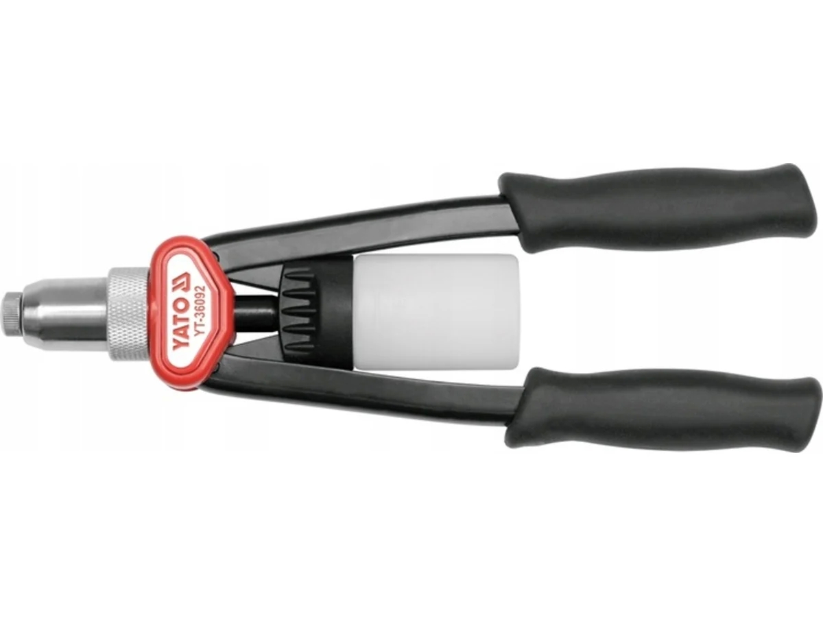 Двуручный заклепочник 3,2 - 6,4мм YATO YT-36092 удобен в использовании за счет наличия двух рукояток. Конструкция обладает высокой эффективностью и может применяться для заклепок диаметром более 6 мм. Имеется емкость для отходов после установки заклепок.