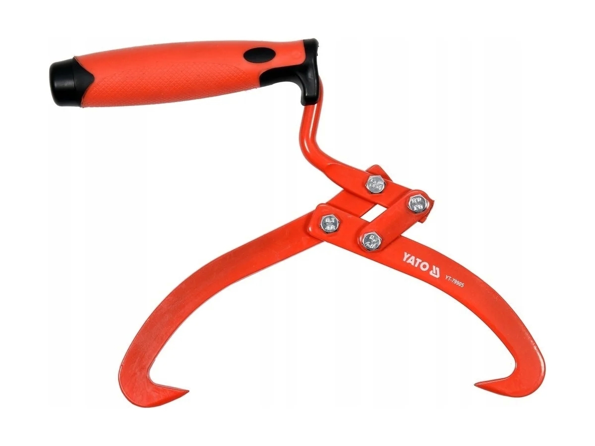 Стальные щипцы для перемещения стволов. Длина около 330 мм, ширина открытия около 275 мм, пластиковая ручка. Благодаря своей специфической конструкции они автоматически зажимаются на перемещаемом стволе, острые концы губок впиваются в древесину и усиливают фиксацию материала.