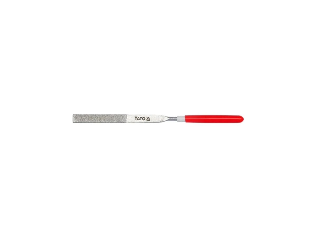 Алмазный надфиль YATO 10х180х70мм плоский YT-6152имеет перекрестную насечку. Она позволяет работать с изделиями под любым углом.