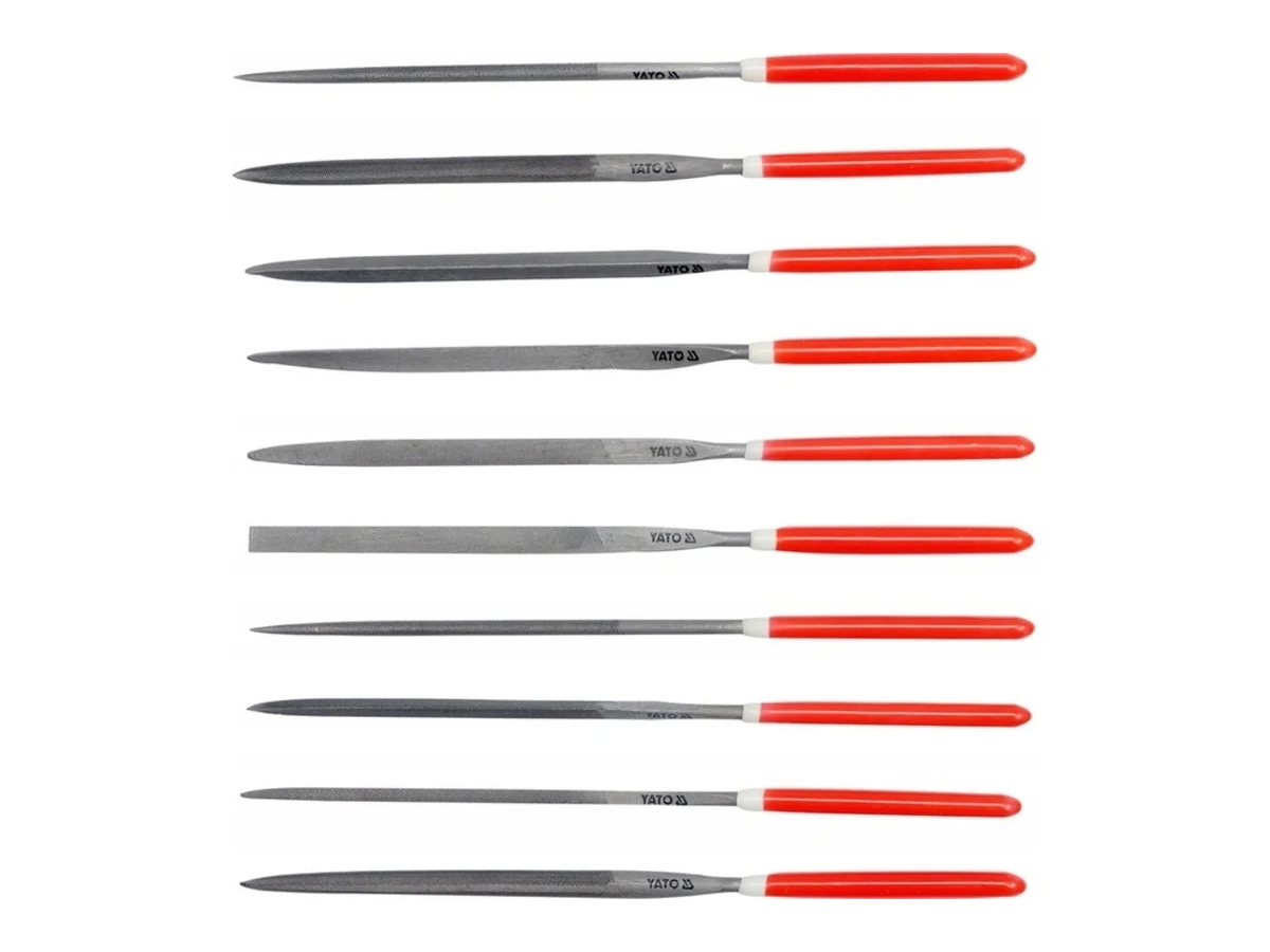 Набор надфилей YATO 180x85мм, 10 предметов YT-6165 предназначен для выполнения мелких слесарных работ с заготовками из особо твердых материалов, таких как: металлы, керамическая плитка, стекло и прочее. Пластиковые ручки эргономичны и не скользят в руках оператора при работе.