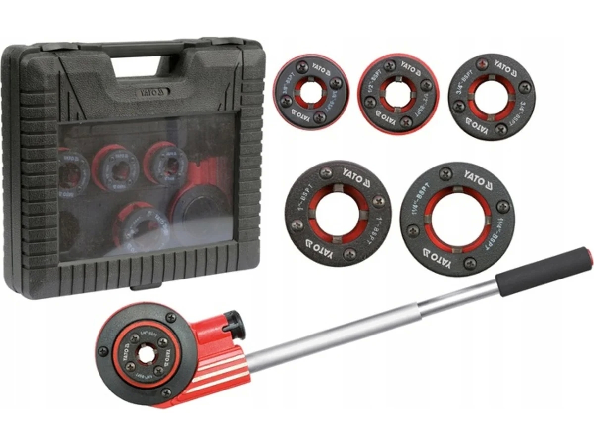 Трубные клуппы (6 шт.) YATO YT-2900 предназначаются для нарезания резьбы на металлических трубах. Набор состоит из шести головок разного диаметра, которые изготавливаются из прочного материала и прослужат длительное время.