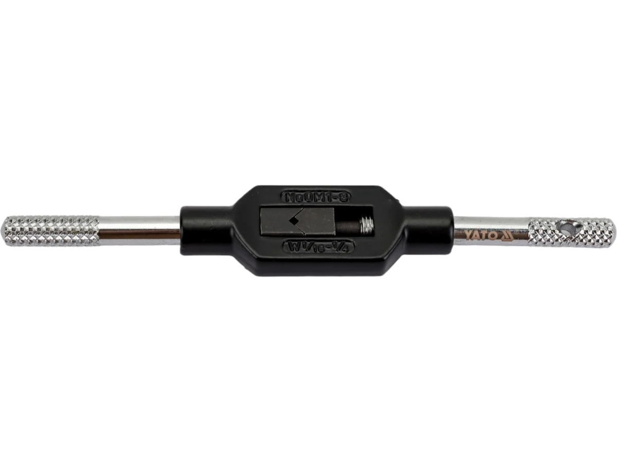 Вороток для метчиков M1-M8 YATO YT-2995 представляет собой типовую конструкцию, которая позволяет установить метчики размером от 1 до 8 мм. Рельефные окончания рукояток значительно упрощает процесс вращения и обеспечивают эффективную работу при нарезании резьбы.