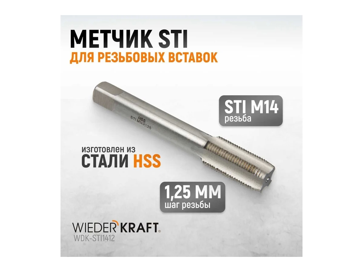 Метчик WIEDERKRAFT STI M14x1,25, HSS WDK-STI1412 предназначен для совместного применения с резьбовыми вставками при восстановлении метрической резьбы.