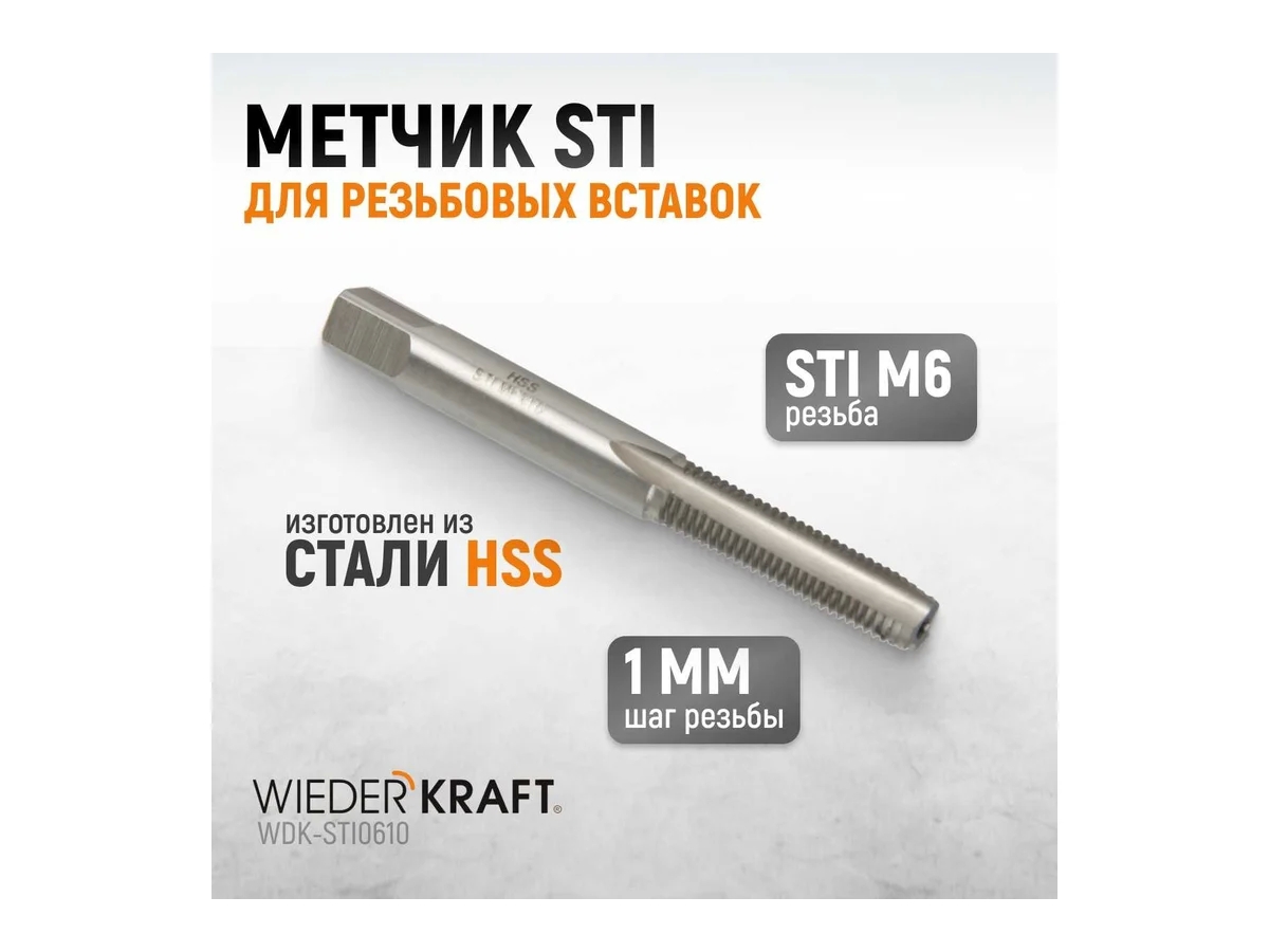 Метчик WIEDERKRAFT STI M6x1,0 HSS WDK-STI0610 предназначен для совместного применения с резьбовыми вставками при восстановлении метрической резьбы.