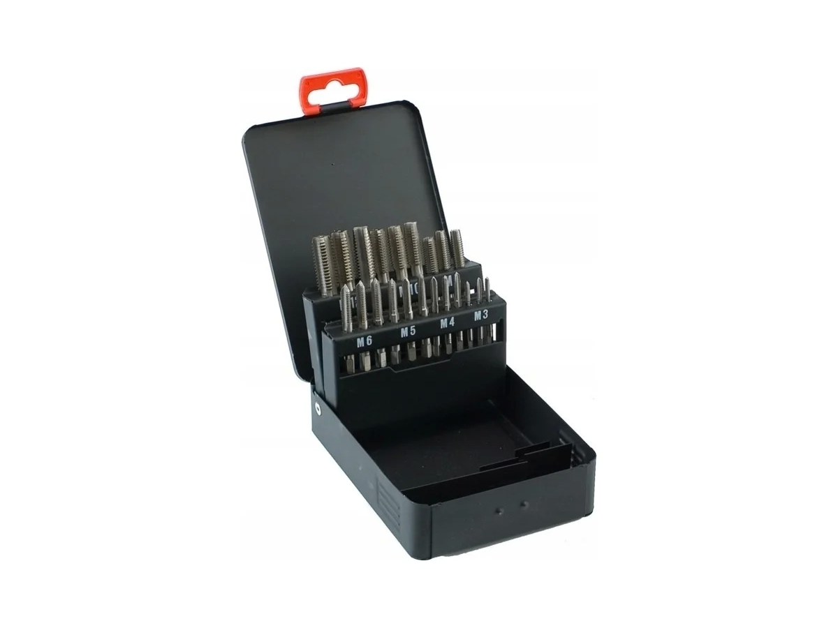Набор метчиков предназначен для нарезания резьбы в заготовках из сталей и цветных металлов. Инструменты выполнены из качественной быстрорежущей стали, благодаря чему отличаются прочностью и долговечностью. Набор поставляется в удобном кейсе для транспортировки и хранения.