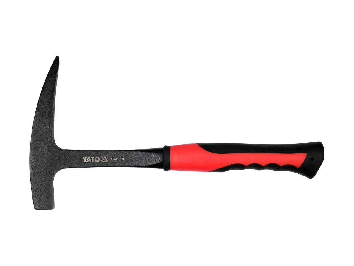 Геологический молоток с острым концом. Рукоять и головка представляют собой монолит. Для удобства пользователя и надежного захвата вал покрыт материалом ABS и TPR.