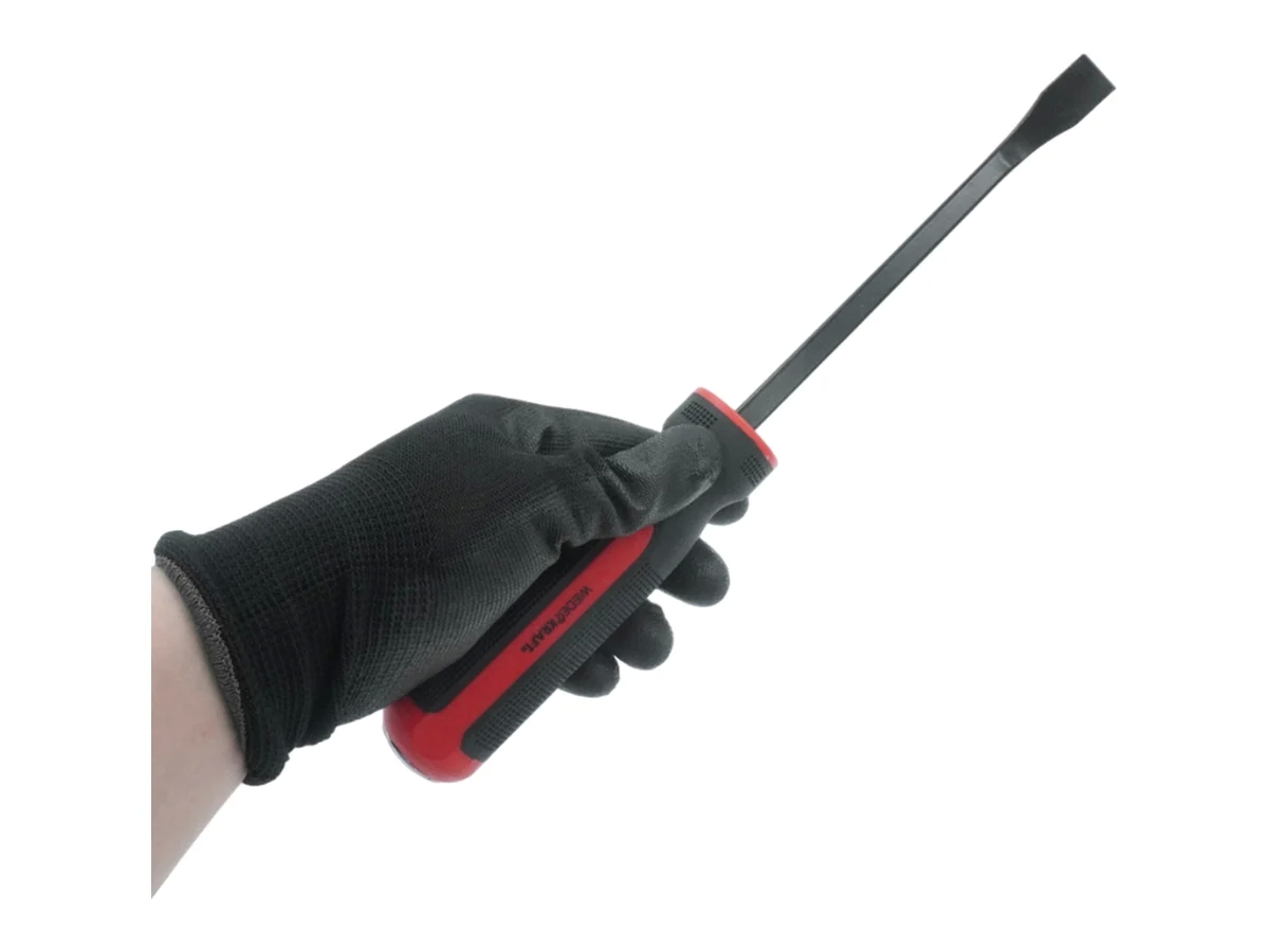 Лопатка монтировочная WIEDERKRAFT WDK-02012 – это универсальный инструмент для демонтажа деталей, их позиционирования и фиксации при ремонте автомобилей. Изготовлена из высокоуглеродистой стали с защитным черным покрытием, что обеспечивает прочность и долговечность.