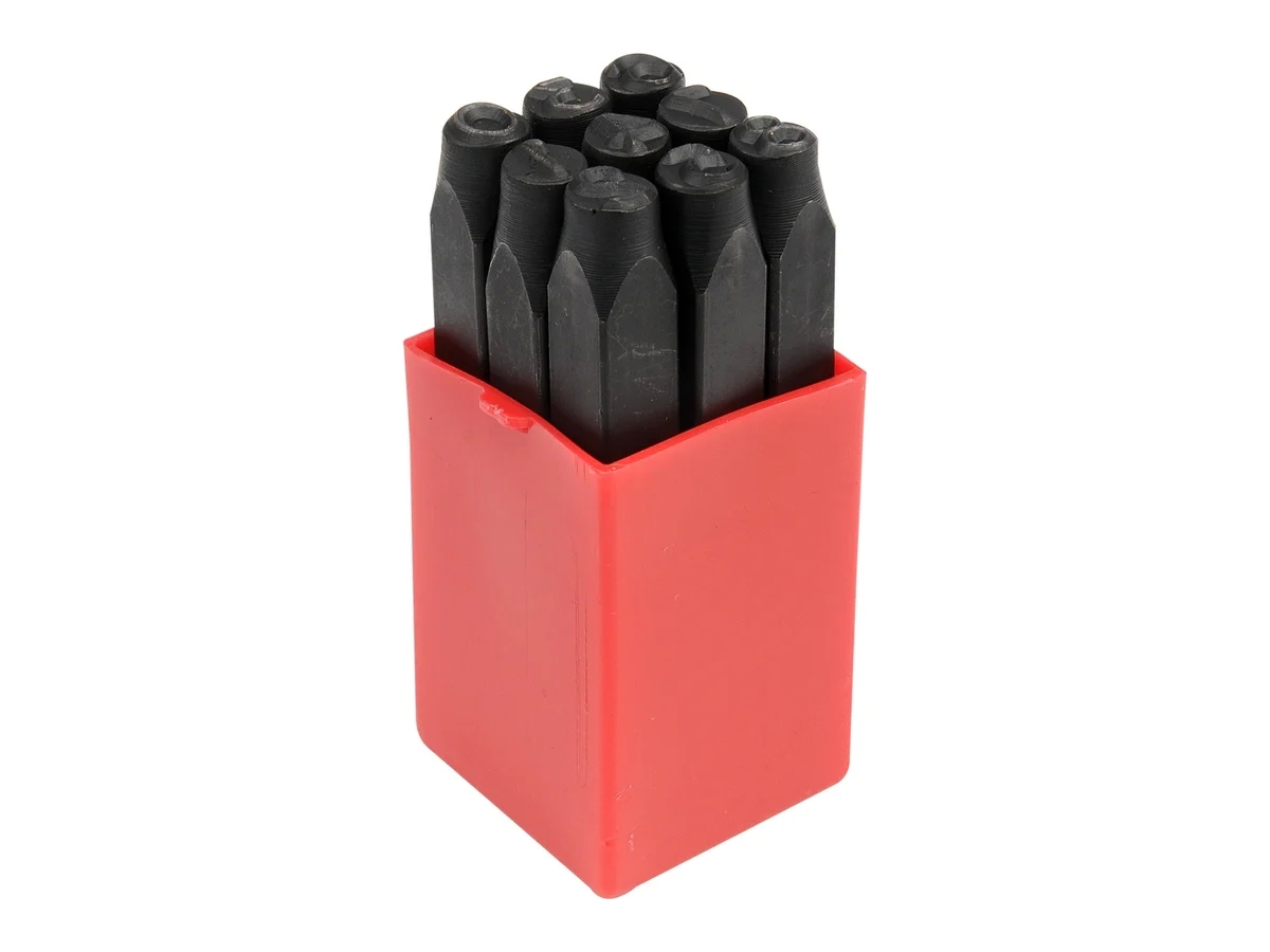 Цифровые клейма YATO 9пр-6мм YT-6854 - пуансоны для нумерации изготовлены из углеродистой стали 1045CS, закаленной до 50-55 HRC. Прямоугольные штампы высотой 66 мм и стороной 8 мм, оканчиваются маркировочным элементом - цифрой высотой 6 мм.