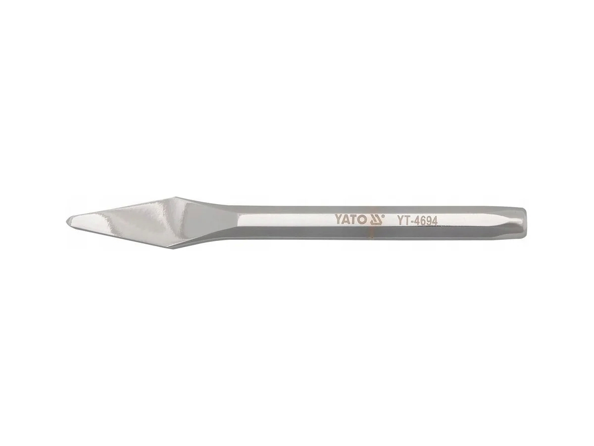 Зубило предназначено для точных работ по металлу, резки, надрезания, маркировки, срезания болтов или заклепок и других подобных операций. Рабочая часть зубила утолщенная, с заточенной, фрезерованной кромкой, острая рабочая часть шириной 5,5 мм. После удара молотком оставляет след на материале. Общая длина 125 мм, рукоятка шестигранного профиля 9,4 мм. Зубило изготовлено из стали CrV60, полностью хромировано, полировано и имеет зеркальную поверхность.