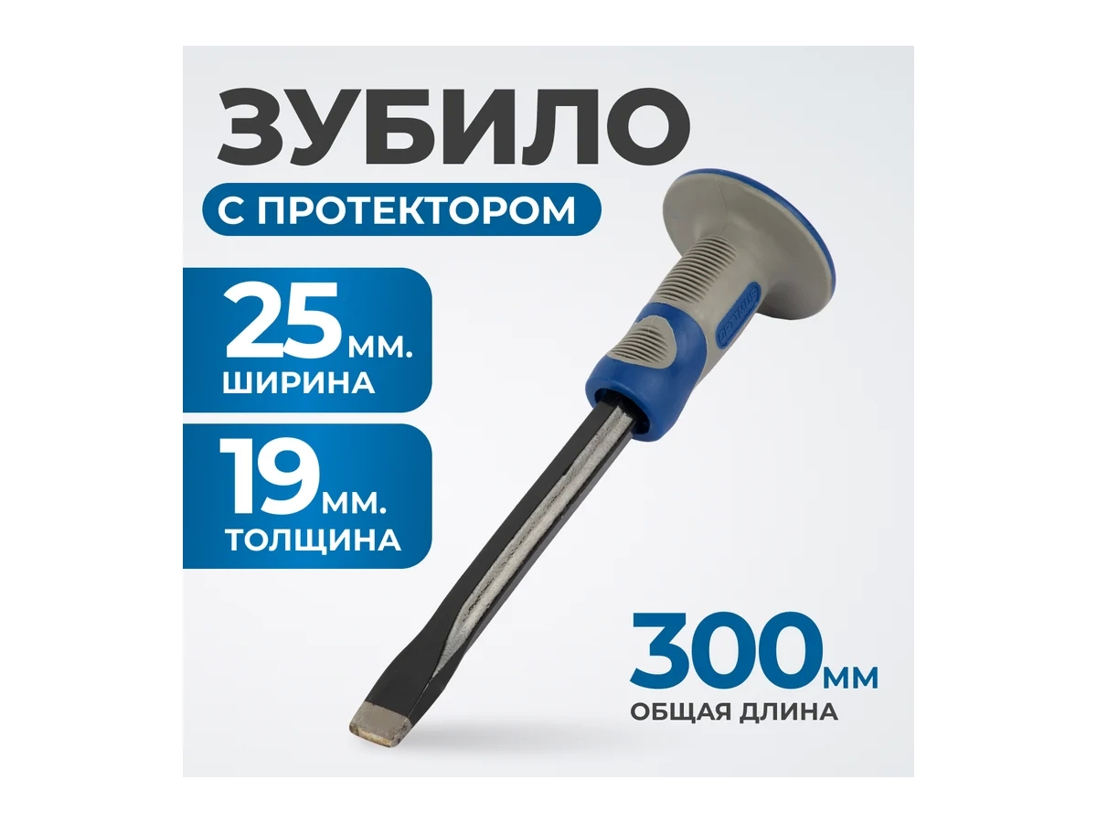 Плоское зубило с фиберглассовой рукоятью 1925x19х300 мм OPT-HM300, оснащено специальным протектором на рукоятке инструмента, который защищает пальцы и ладонь от попадания молотком. Высокоуглеродистая сталь 45# с жесткостью 45HRC повышает ресурс работы. Двухкомпонентная рукоять препятствует соскальзыванию во время работы.