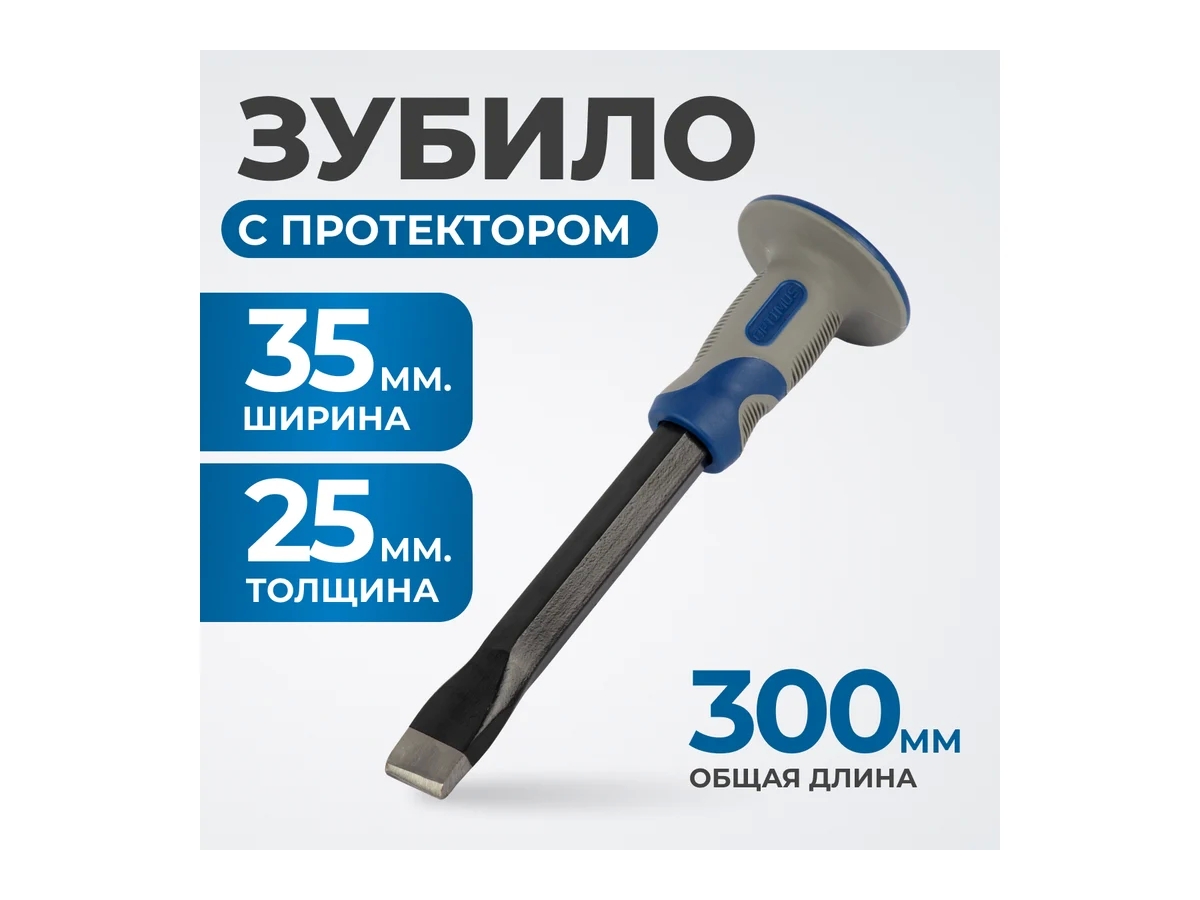 Плоское зубило 35x25х300 мм с протектором OPT-HM30025, оснащено специальным протектором на рукоятке инструмента, который защищает пальцы и ладонь от попадания молотком. Высокоуглеродистая сталь 45# с жесткостью 45HRC повышает ресурс работы.