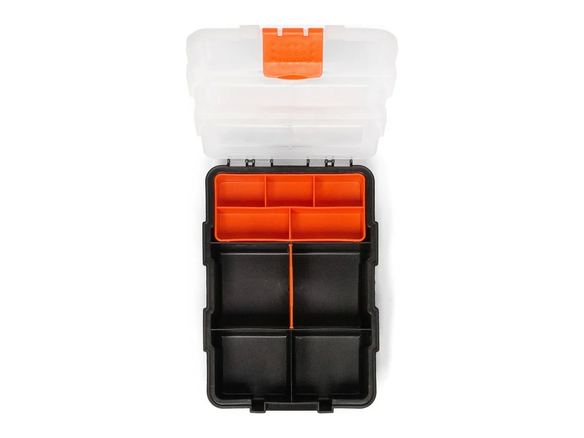 Кейс-органайзер КВТ К-04 81441 с модульными отделениями для хранения мелких предметов. Выполнен из прочного пластика, устойчивого к царапинам и ударам.